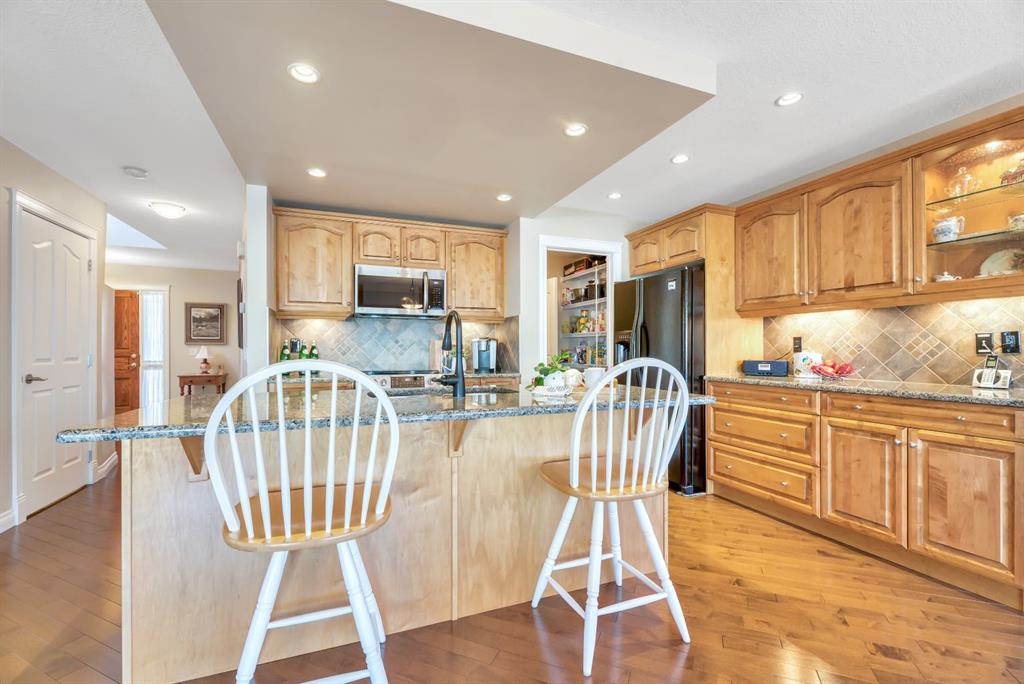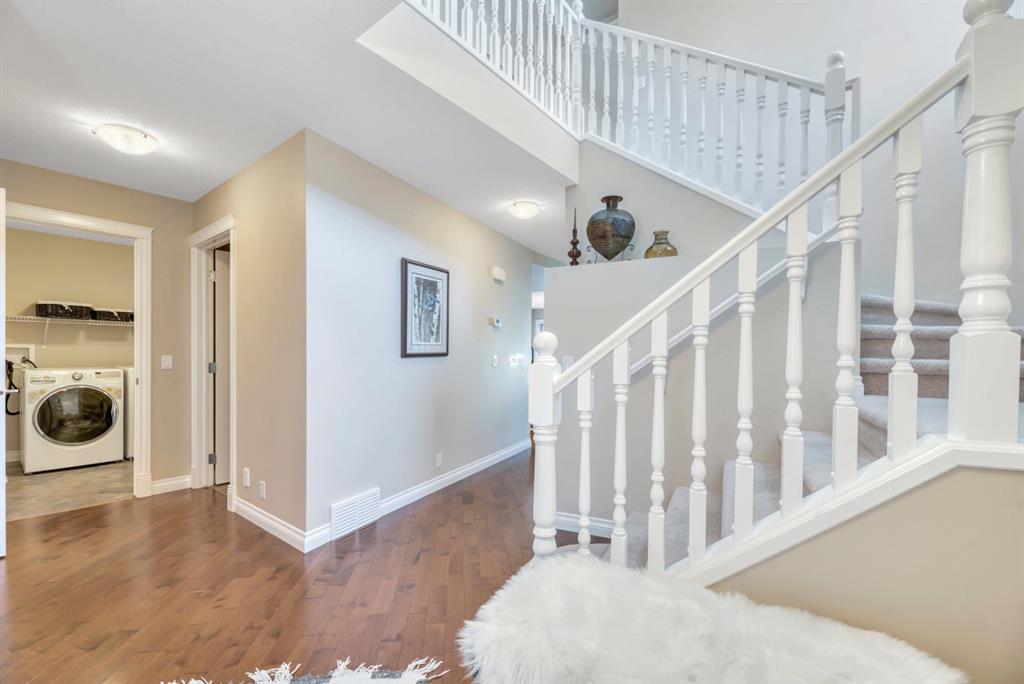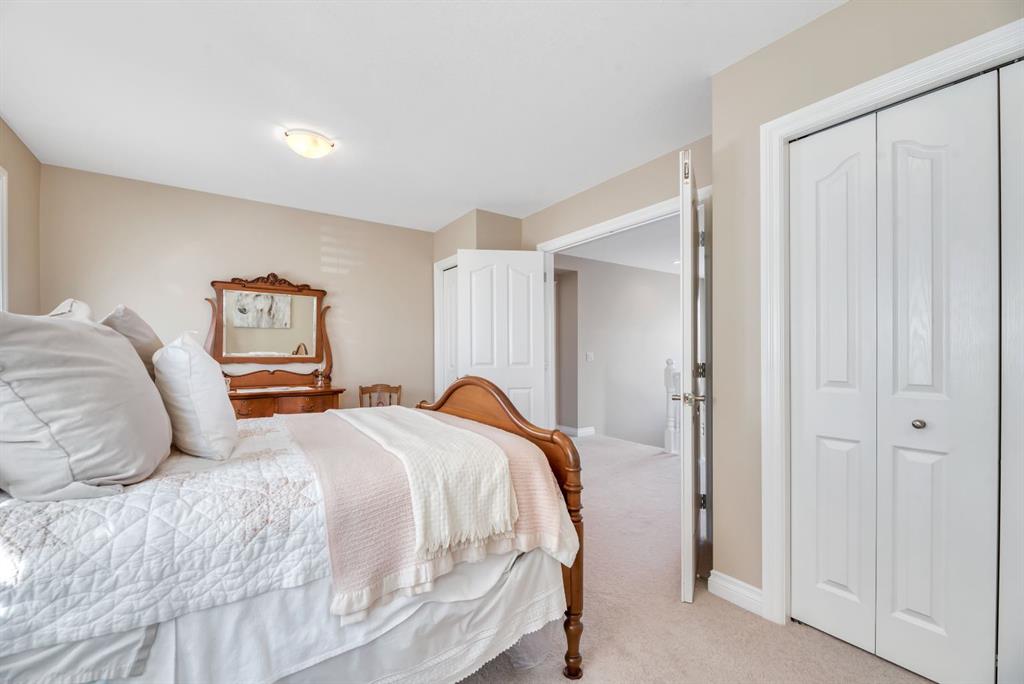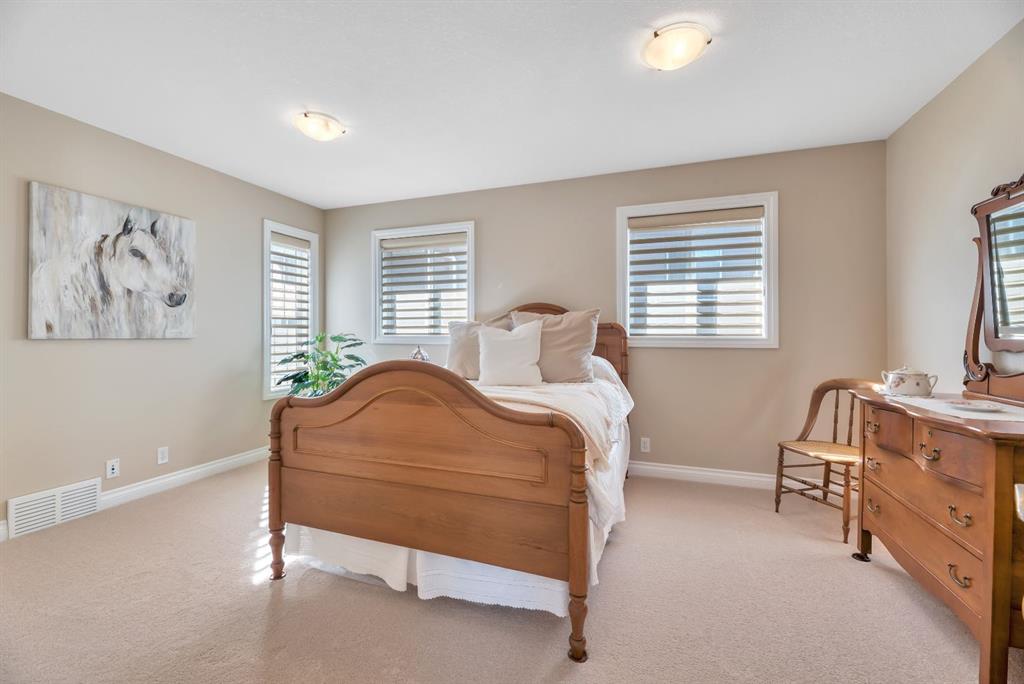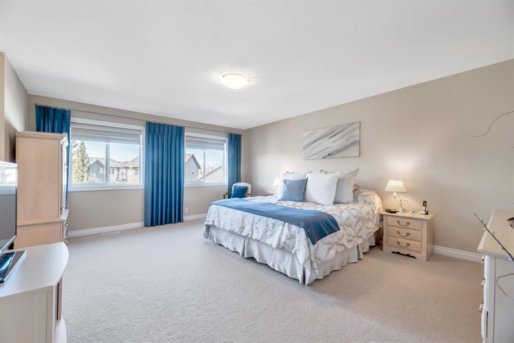 Welcome to this exceptional in the highly sought-after community of Evergreen SW, perfectly positioned on a very rare 8,223 sq ft private oasis lot surrounded by mature trees & professional landscaping inc. a large vegetable garden. Meticulously maintained, this custom Jager built 2-storey offers almost 3300 sq ft of refined living space & showcases pride of ownership at every turn. From the moment you arrive, the stunning solid oak front door sets the tone for the quality and craftsmanship found throughout. Inside, you’re greeted by a bright and elegant main floor featuring a versatile formal dining room/home office, expansive windows dressed with Hunter Douglas Pirouette blinds, and a warm, inviting living room anchored by a gas fireplace. High end flooring is throughout the home and has diagonally laid maple hardwood flooring for a timeless touch, complemented by plush carpeting for comfort & quality porcelain tile work.The beautiful kitchen offers maple cabinetry, a 6’ granite island with wine rack, undermount lighting, newer slide-in range and microwave hood fan, dishwasher, fridge and garburator. The heart of this home lies in the functionality. Step in from the double attached garage to the combo back entry/laundry room with dedicated wash sink. This space flows into a large walk through pantry with shelving on both sides offering unparalleled convenience for bringing in groceries & staying clean and organized. Speaking of clean, this home also has a central vac system. The backyard is your own private retreat—an incredible 550 sq ft two-tier cedar deck, freshly stained & complete with built-in bench seating, planters, gas line for BBQ (BBQ included), & under-deck storage. The beautiful landscaping is enhanced by a full irrigation & lighting system & includes a newer shed as well as 3 rain barrels, creating the perfect setting for a fabulous outdoor lifestyle! Upstairs, you’ll find a sunken bonus room, a full 4-piece bathroom, & a massive second bedroom with dual closets (easily converts into two bedrooms with the smart layout provided). The spacious primary suite overlooks the backyard & features a luxurious 5-piece ensuite with cozy in floor heat, dual sinks, soaker tub, separate shower, & a fully customized W/I closet.The basement has been developed with thought & care...includes great storage space, 3 piece bath with heated tile floor as well as tiled shower & walls. Enjoy family time, movie & sports nights with a wet bar on the way to the media room complete w/ built in speakers for max sound experience as well as a fireplace feature wall. Just behind is a great gym space (treadmill inc) with commercial carpet (& smart access to media receiver controls through the closet doors). The additional bedroom in the basement is a big bright space - comfortable for visitors or family members. Come and visit this home & see all the extras for yourself - truly a MUST SEE! Check 3D tour for all additional photos!
