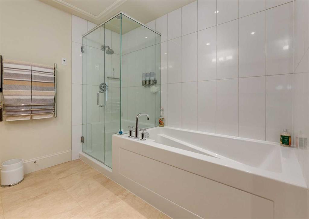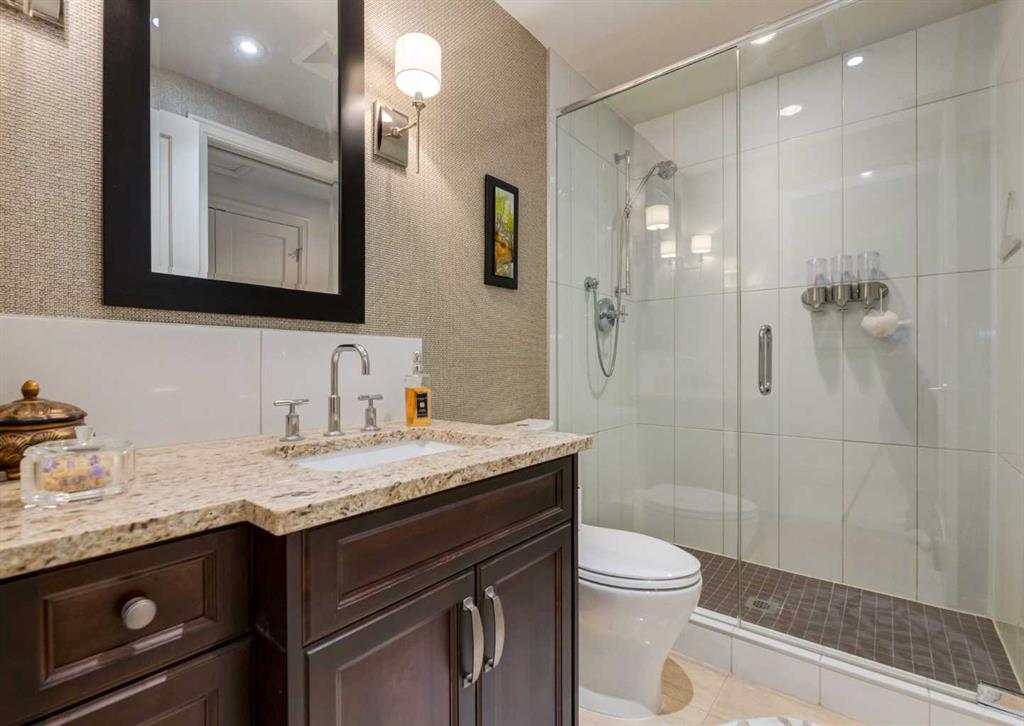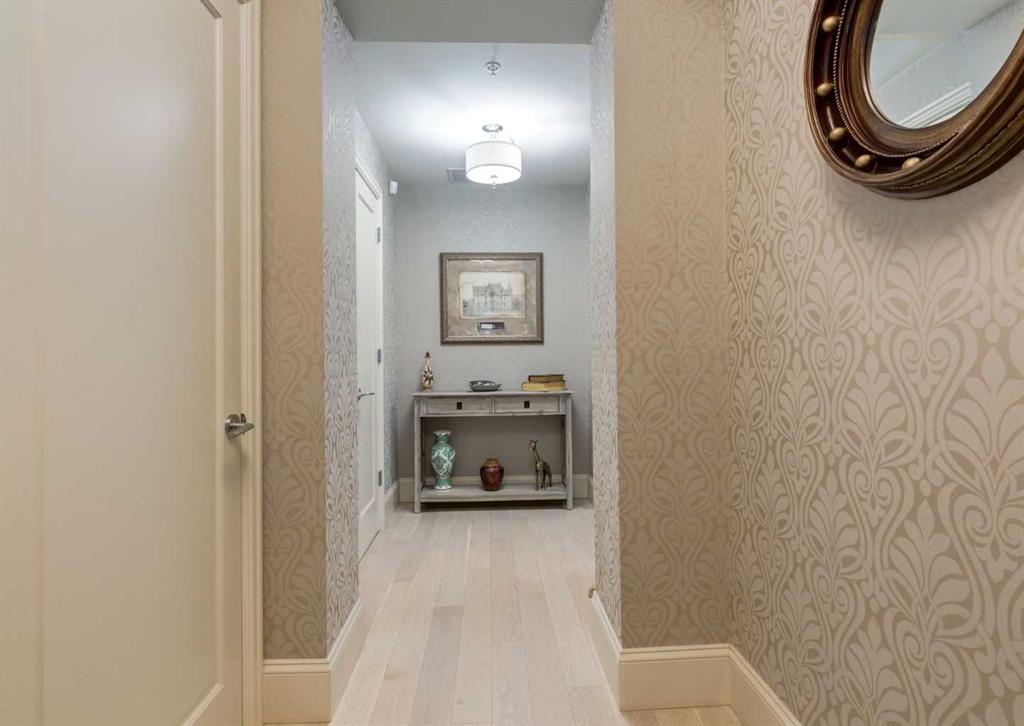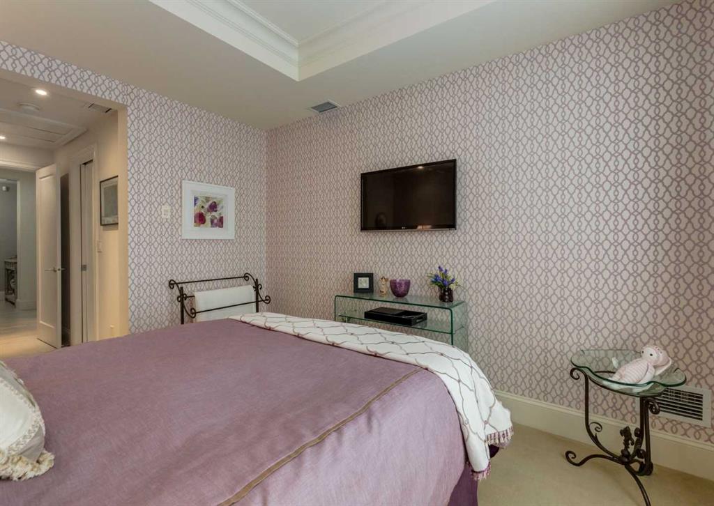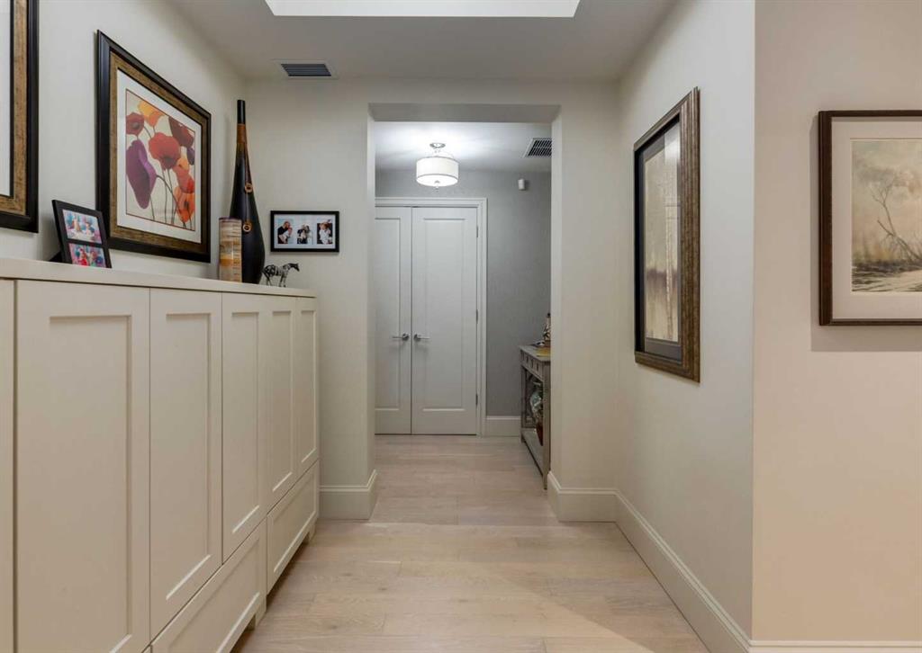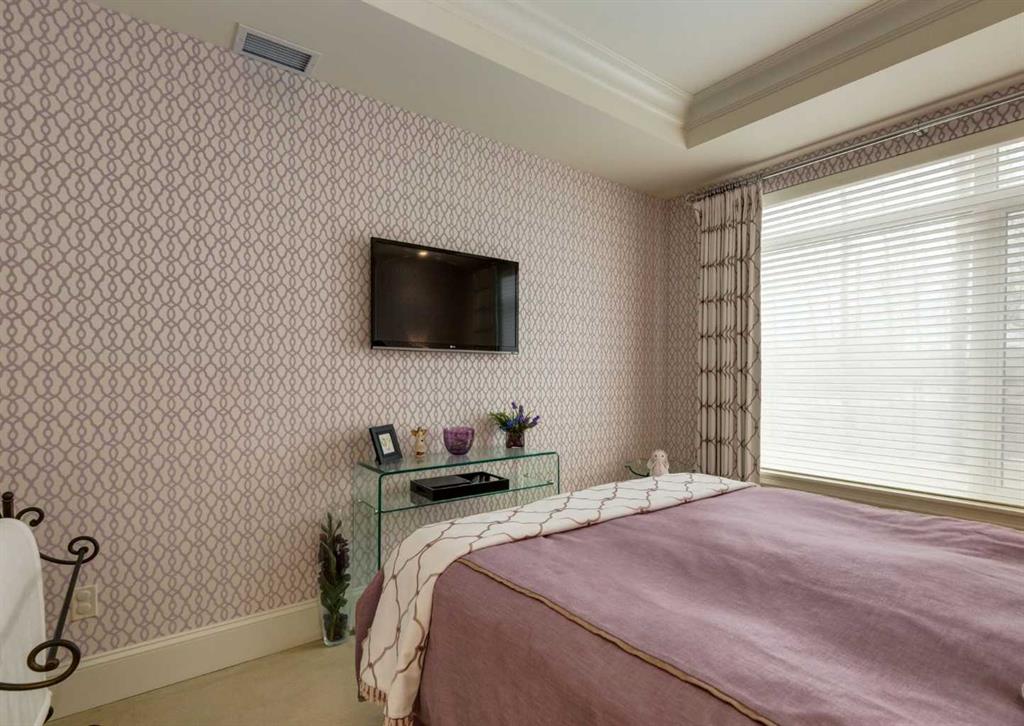 Coveted, Spectacular Corner Unit location on the main floor! Unobstructed views of the Bow River and parkland, with lots of opportunity to ride your bike, walk and enjoy the outdoors and wildlife that wander close by for your enjoyment. You will love the fabulous decor. Kitchen with plumbed-in coffee maker, gas stove, dishwasher, fridge, hood fan, microwave. Espresso color cabinetry and leathered granite countertops. Beautiful island overlooking dining and living rooms with an amazing view of the extensive yard & beyond the walking paths to the river. Breakfast bar seating for 4 with stools included. Lovely built-in desk with ample shelving. Engineered flooring (Arctic Oak). Water Feature! Custom draperies. All window blinds are motorized throughout. Bedrooms have black out drapes. Primary bedroom with 5-piece bath and heated towel bar is very spacious with 2 sinks, tub/separate shower. Walk-in closet with ample, well designed shelving. 3-piece bathroom is shared with second bedroom for complete privacy or easy for visitors as well. Lots of built-in storage. Stacking washer/dryer. Gas outlet on patio. 2 Titled Parking Stalls/P2. 1 Titled Storage. Bicycle storage included. Car wash. Pet friendly with board approval. Walk to Carburn Park. Easy access to major transportation routes, shopping, restaurants, YMCA and a lot more! Champagne is a wonderful, amazing condo complex. You are going to love it!!