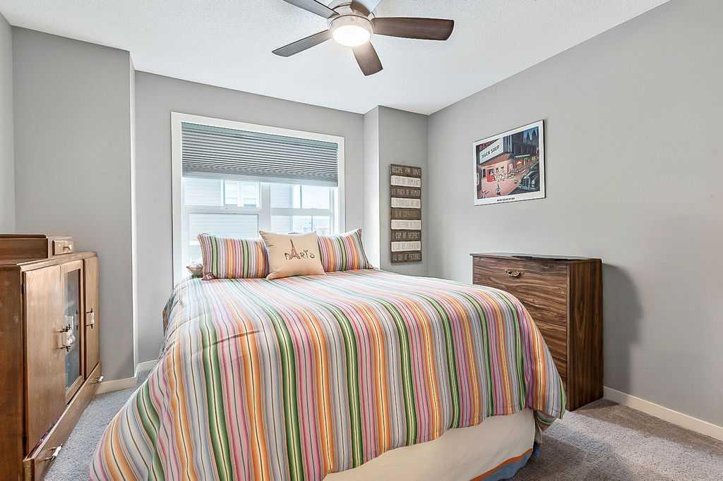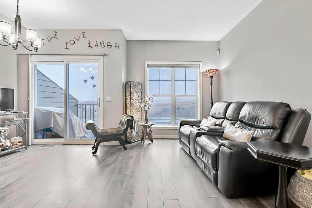 Welcome to this meticulously maintained 3-bedroom, 4-bathroom three-level split townhome; offering over 1,800sqft of beautifully developed living space in the desirable community of Sunset Ridge. Step inside to an open-concept main floor featuring 9’ ceilings and rich plank flooring throughout. The gourmet kitchen is sure to impress with stainless steel appliances, granite countertops, tiled backsplash, custom cabinetry and a large central island that seamlessly overlooks the spacious living room — perfect for both everyday living and entertaining. A separate dining area provides access to the west-facing balcony, where you can unwind while taking in stunning mountain views. A convenient 2-piece powder room completes this level. The second level offers two generously sized bedrooms and a well-appointed 4-piece bathroom; ideal for family or guests. Retreat to the entire third level dedicated to the oversized primary suite, featuring breathtaking west-facing mountain views, a large walk-in closet, additional storage and a private 3-piece ensuite with an oversized walk-in shower. The conveniently located laundry area with custom cabinetry adds to the functionality of this upper level. The fully finished walk-out basement expands your living space with a large family room, 2-piece bathroom, and ample storage—perfect for a media room, home office, or guest space. Additional features include a single attached garage with epoxy flooring and custom storage, alarm system, blackout blinds and updated lighting throughout. Ideally located close to schools, parks, shopping, and with easy access to main roadways, this home offers the perfect blend of comfort, style, convenience and lifestyle.