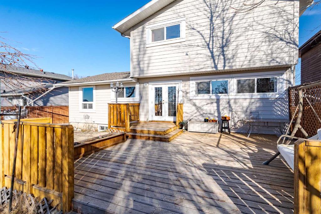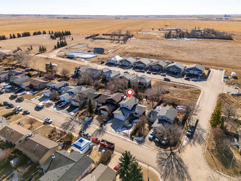 Located at nearest edge of Irricana, this two storey home offers 1,883 square feet above grade and 2,999 square feet of total living space, set on a large southwest facing lot with mountain views and an abundance of outdoor space. The main floor is expansive and thoughtfully arranged. As you enter, the living room is positioned at the front of the home, creating a welcoming first impression. From there, you transition into a dedicated dining room designed to accommodate family gatherings and formal dinners with ease. The kitchen offers substantial workspace and storage, with clear opportunity for tasteful modernization over time. Just beyond, the family room provides a comfortable, inviting space for everyday living, and has a gas fireplace. Also located on the main floor is a large bedroom, a half bath, and a separate laundry area. The inclusion of a main level bedroom offers meaningful flexibility, whether for guests, multi-generational living, or a private office. Upstairs, there are three bedrooms, including the primary suite. The primary bedroom features a spacious ensuite, while a well-appointed four-piece bathroom serves the additional bedrooms. The basement is partially developed and provides considerable additional square footage. There is excellent potential to further enhance the space, or continue utilizing it for recreation, storage, or hobbies in its current form. Outside, the fully fenced, southwest facing yard is substantial and established. Mountain views contribute to the overall appeal, and the setting feels open and private while remaining within town limits. The Irricana off leash dog park is just a short walk away, without the disruption of backing directly onto it. A double attached garage completes the home. This is a well-maintained property offering scale, flexibility, and long-term potential. The layout is balanced, the lot is impressive, and the overall footprint represents an increasingly rare opportunity in today’s market.