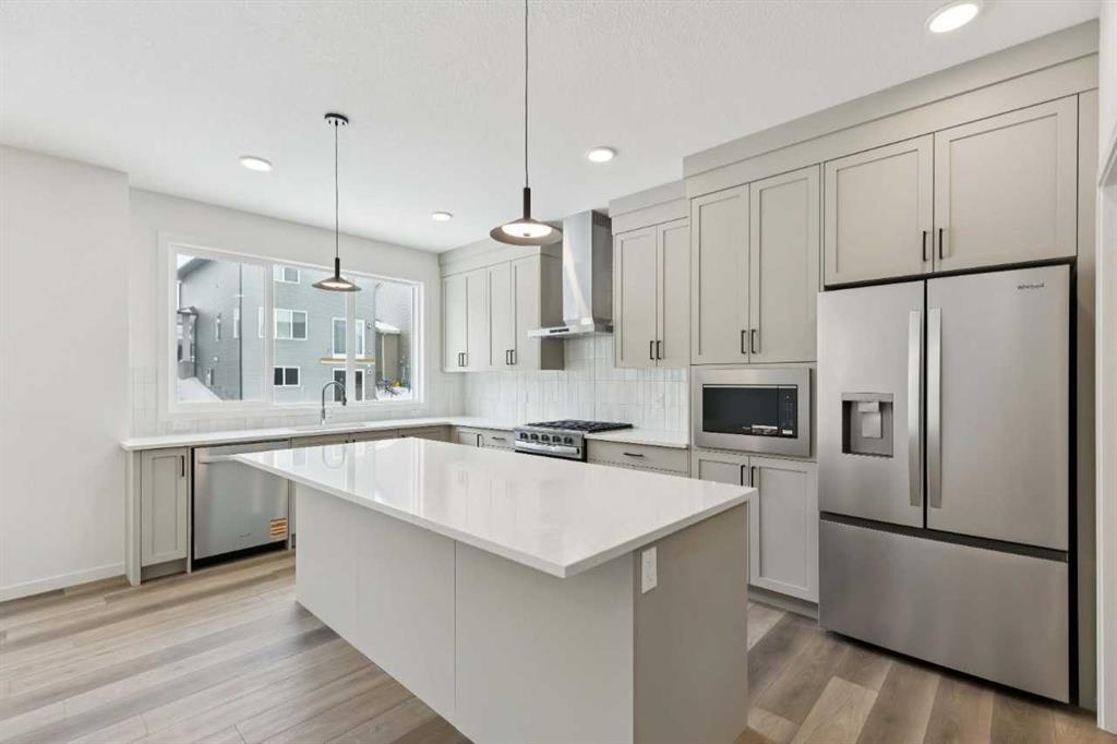 Welcome to the Connor by Calbridge Homes, located at 823 Bayview Terrace in the desirable Bayview community. Offering 2,106 sq ft of thoughtfully designed living space, this home features 3 bedrooms and 2.5 bathrooms with a unique 3-level split layout, all above grade. The main living area showcases a bright open-concept design with a spacious kitchen featuring an oversized 8’ island, walk-in pantry, upgraded appliance package, and modern finishes. Upstairs, enjoy a versatile bonus room and additional flex/den space, ideal for work or relaxation. The primary bedroom includes dual sinks in the ensuite, with the same convenience extended to the main bathroom. Additional highlights include railing throughout, an added front foyer window for natural light, washer and dryer, and a 21’ x 22’ double attached garage. Located close to parks, pathways, and recreation, this home is available for immediate possession.