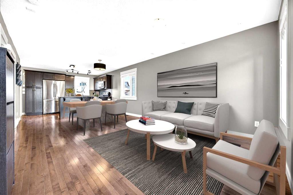 OPEN HOUSE SUNDAY 2-4 Welcome to this beautifully maintained former show home offering 3 spacious bedrooms, an oversized double detached garage, and NO CONDO FEES! This semi-detached property offers an exceptional opportunity for buyers seeking comfort, style, and convenience. From the moment you step inside, you’ll appreciate how pristine this home shows. The bright, open-concept main floor is designed for modern living, featuring stunning hardwood floors, NEW CARPETING, a stylish kitchen with granite countertops, classic stainless steel appliances, and plenty of cabinet space. The layout flows seamlessly into the dining and living areas, creating the perfect space for entertaining or relaxing at home. A convenient powder room and a thoughtfully designed mudroom with built-in storage add both function and practicality. This home is loaded with upgrades to enhance your comfort, including central air conditioning, a Nest smart thermostat, central vacuum system, new carpets, and is pre-wired for surround sound. These features provide you with both efficiency and a touch of luxury. Upstairs, you’ll find three generous bedrooms with cozy carpeting throughout. The primary suite provides a private retreat with its own 3-piece ensuite, while two additional bedrooms and a full bathroom make this an ideal layout for families or guests. The unfinished lower level offers excellent potential for future development giving you the flexibility to create a space that fits your needs. Currently it is complete with a bathroom rough-in, laundry area, and ample storage space. Step outside to enjoy a private, fully fenced yard with a lower patio space ideal for entertaining, along with plenty of room to garden and relax outdoors. The oversized double detached garage provides ample space for vehicles, storage, or even a workshop. Added peace of mind comes with a newer roof featuring hail-resistant shingles. This property is situated in a welcoming, family friendly neighbourhood close to parks and green space and is truly the perfect balance of lifestyle, location, and value. Ideally located with quick access to Stoney Trail and Deerfoot Trail, you’re just minutes from CrossIron Mills, the airport, and a wide range of everyday amenities, which makes both commuting and daily life effortless. Don’t miss your chance to make it yours! Some photos have been digitally altered with virtual staging