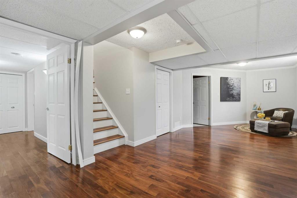This 2 storey split offers a layout that flows effortlessly. The front entrance opens into a bright and airy living space, where vaulted ceilings and large windows bring in tons of natural light, highlighting the rich tigerwood flooring. Just off the living room, the dining area creates a great space to host. The kitchen is the heart of the home featuring a large island with granite countertops, stainless steel appliances, a corner pantry, and plenty of cabinet space, the breakfast nook looks out over the backyard with easy access to the deck perfect for summer BBQs. Upstairs, you’ll find three well sized bedrooms with ample closet space, along with an updated 4 piece bathroom finished with modern tile and quartz. The primary bedroom feels like a true retreat, offering lots of space, a walk-in closet, and a private ensuite with clean, contemporary finishes. The fully finished basement adds even more versatility, with a large rec space that can be used for movie nights, a home gym, or a play area. There’s also a generous fourth bedroom and another full bathroom with heated tile floors great for guests or growing families. The furnace was replaced just 3 years ago, giving you added comfort and peace of mind. The backyard is truly something special spacious and surrounded by mature trees, it feels like your own private escape. A home that truly checks all the boxes come see it for yourself.
