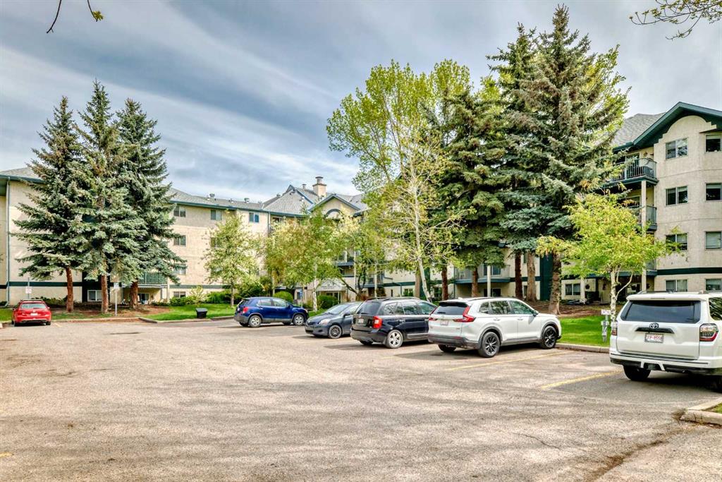 Enjoy unbeatable connectivity with quick access to downtown, Deerfoot Trail, and Stoney Trail — an ideal location for commuters and city explorers alike. Welcome to Dover Pointe, where homeownership becomes an attainable and rewarding step forward. This bright and thoughtfully updated two-bedroom, one-bath condo is perfectly situated on the third floor, offering beautiful southwest-facing views from your private balcony — the perfect place to enjoy your morning coffee or unwind at the end of the day. Inside, a functional galley-style kitchen has been tastefully refreshed with new tile, a new hood fan, ceiling fan, and a newer stove, blending everyday practicality with modern updates. The adjacent dining area flows seamlessly into a spacious, sun-filled living room, creating an inviting space for both entertaining and relaxing. The home features durable laminate flooring throughout the main areas, elegant crown moulding, and brand-new carpet in both bedrooms for added comfort. Each bedroom offers generous closet space, while the convenience of in-suite laundry enhances day-to-day living. This well-managed, pet-friendly complex includes heat and water in the condo fees, along with an assigned outdoor parking stall. Enjoy nearby green space at Southview Off-Leash Park just a short walk away, plus easy access to a variety of local dining options and the extensive amenities of Deerfoot Meadows, including IKEA, Costco, and more. Whether you're a first-time buyer or looking to downsize, this home offers exceptional value, comfort, and convenience — a smart alternative to renting.