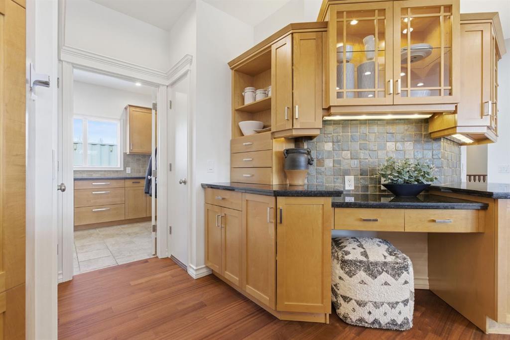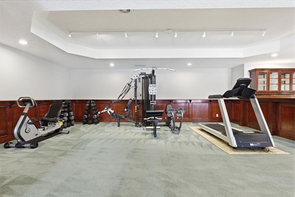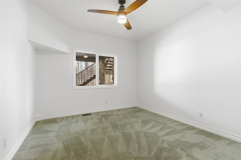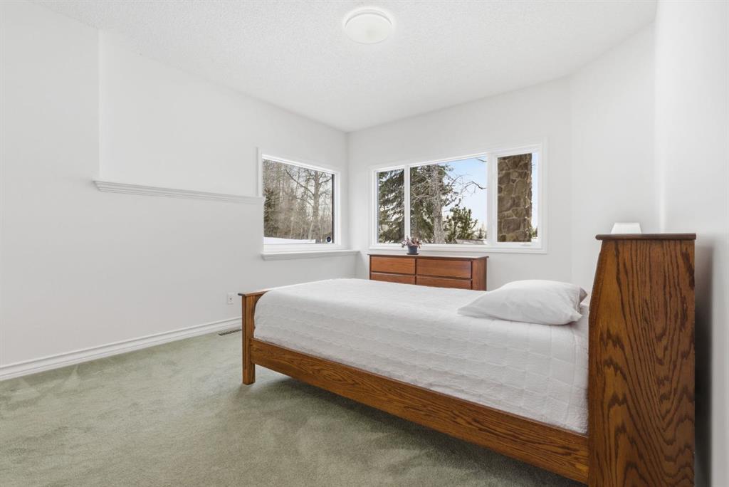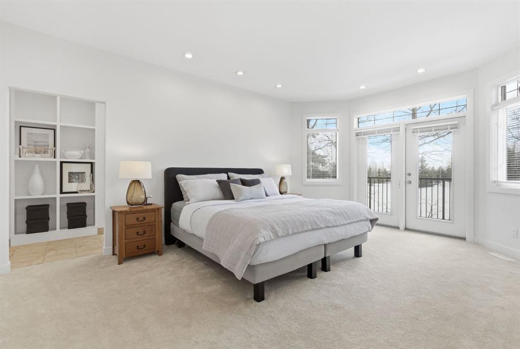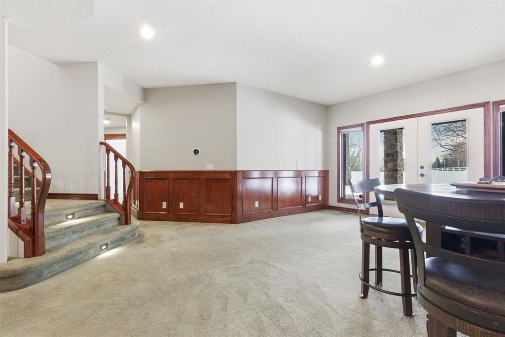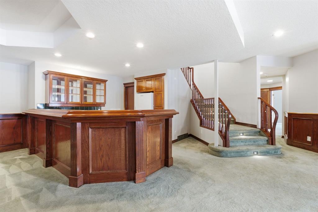 The walkout level feels fully part of the home. Large windows keep it bright throughout, while three oversized bedrooms and expansive open areas create room for a second living room, gym, games area, or some combination of all three. Built-in bookshelves, a wet bar, and direct access to the patio give the lower level both character and versatility, even in its more original finish.