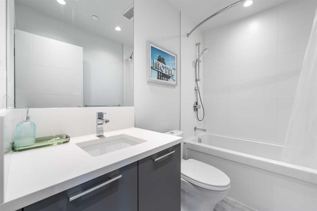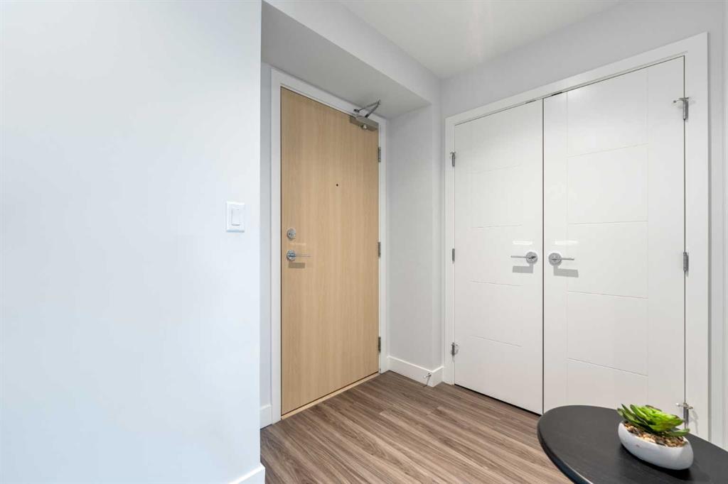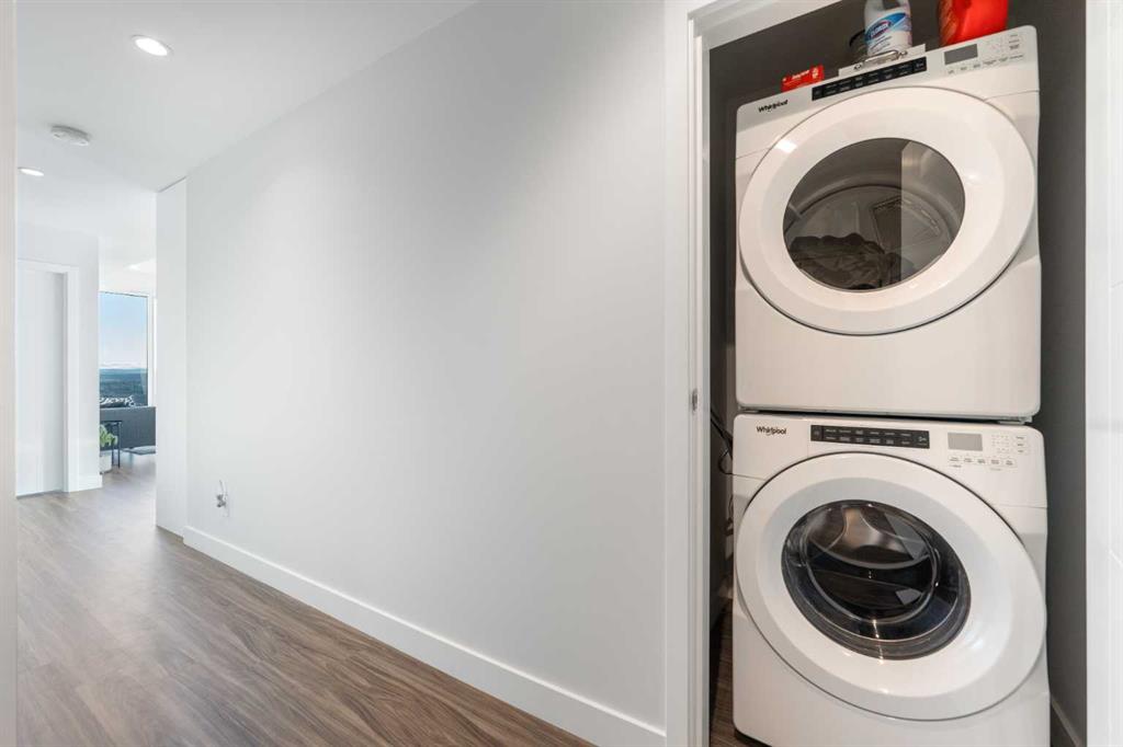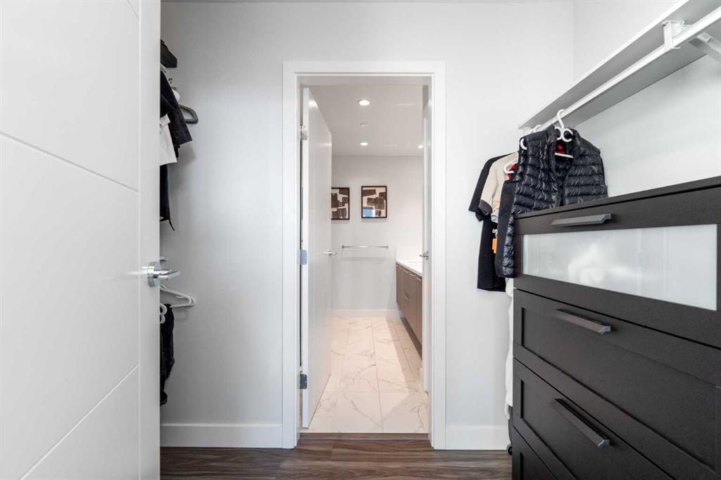 Unobstructed views of the Rocky Mountains, the Bow River, and the Calgary skyline — all from the 35th-floor southwest corner of Arris in East Village, Calgary, Alberta. This 1,150-square-foot, 2-bedroom plus den, 2-bathroom condominium features floor-to-ceiling windows on two exposures flooding the unit with natural light throughout the day.