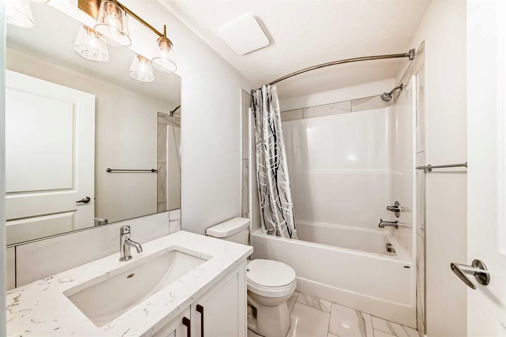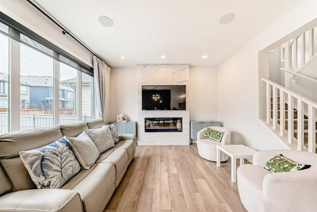 Welcome to this exceptional former show home, offering over 3,560 sq.ft. of beautifully developed living space in one of Calgary’s most sought-after lake communities. Enjoy year-round recreation just minutes from your doorstep — from skating in the winter to swimming, paddle boarding, and fishing in the summer. Designed with both comfort and functionality in mind, the open-concept main floor is perfect for everyday living and entertaining. The chef-inspired kitchen features full-height white cabinetry, soft-close drawers, and a bright stylish tile backsplash. A striking navy island with quartz countertops provides ample prep space, complemented by a gas cook top, built-in wall oven, microwave, and a spacious pantry. The bright dining area seamlessly connects to the backyard deck, while the inviting living room showcases a modern fireplace and abundant natural light. A versatile main-floor flex room offers the perfect space for a home office, formal dining room, or playroom. The mudroom with direct garage access adds everyday convenience for busy families. Upstairs, you’ll find three generously sized bedrooms, including a luxurious primary retreat complete with a walk-in closet and a spa-inspired ensuite featuring dual vanities, a deep soaker tub, and an oversized shower. A 5-piece main bathroom and an upper-level laundry room with additional storage and a bonus room complete this level. The rare third-floor loft is a standout feature, offering incredible flexibility as a guest suite, media room, home office, or private retreat for teens — complete with its own 4-piece bathroom. The fully developed basement expands your living space with impressive 9-foot ceilings, an additional bedroom, a full bathroom, and a spacious recreation area. A custom wet bar with built-in cabinetry makes it ideal for entertaining. The separate side entrance provides excellent flexibility for multi-generational living, a home-based business, or potential suite development (subject to approval). Additional highlights include air conditioning units for enhanced comfort and built-in speakers. Ideally situated on a quiet street, just minutes from parks, pathways, and the lake, this home offers the perfect blend of style, space, and location. Don’t miss this rare opportunity to own a truly exceptional family home. Home is under Certified New Home Warranty program.