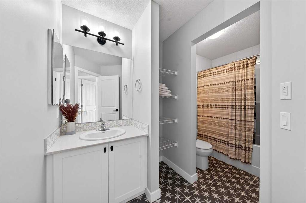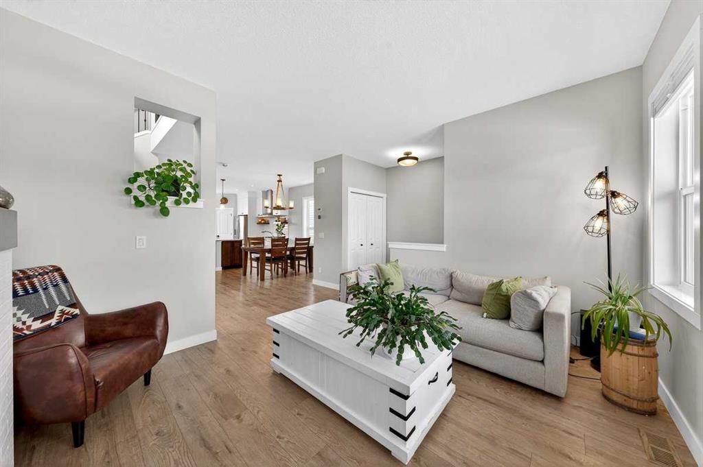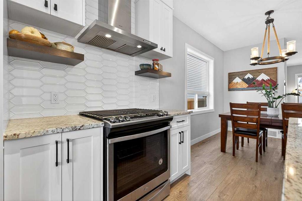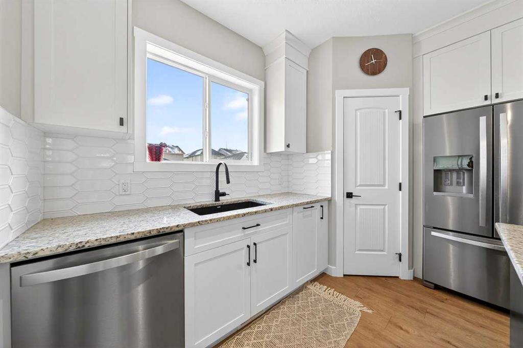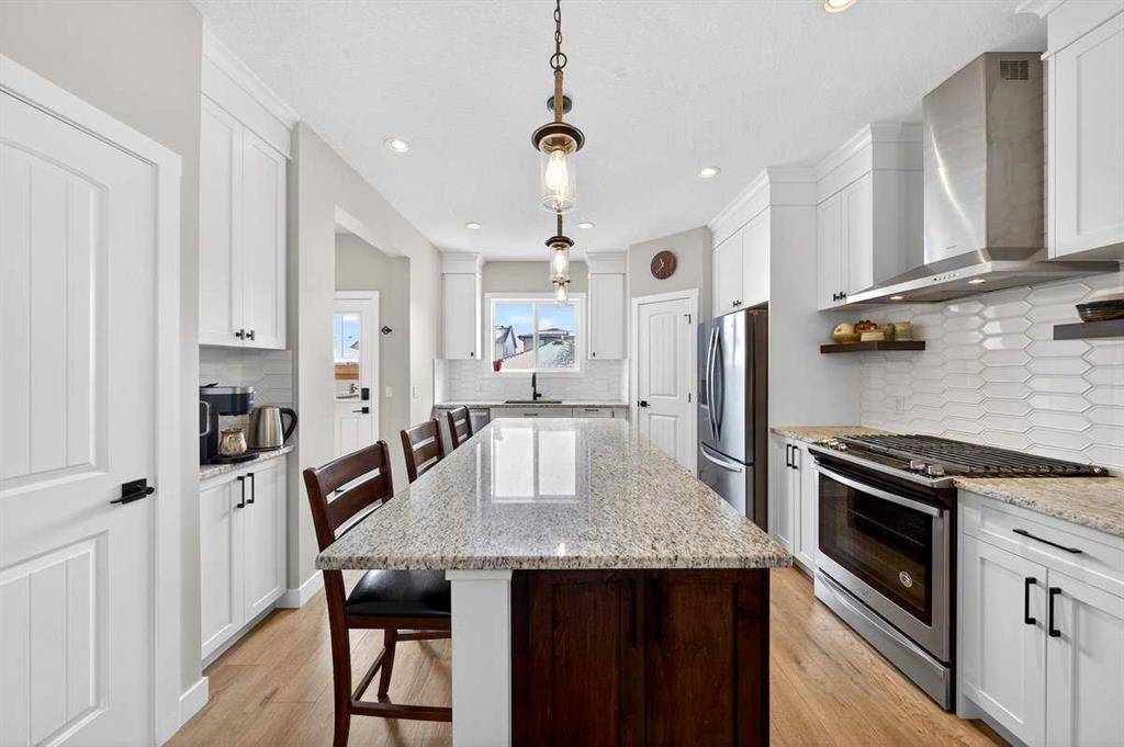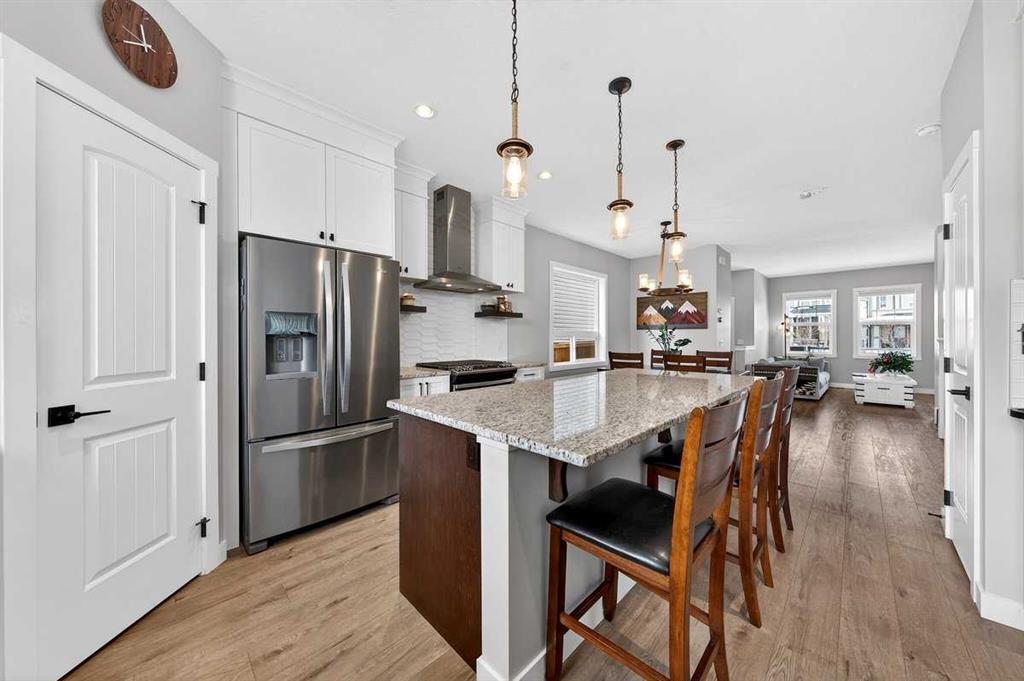 The main level showcases a bright, open-concept floor plan enhanced by elegant custom interior finishings and durable vinyl plank flooring. The well-appointed kitchen features a functional breakfast bar and a spacious pantry, seamlessly flowing into the living and dining areas—ideal for both everyday living and entertaining.