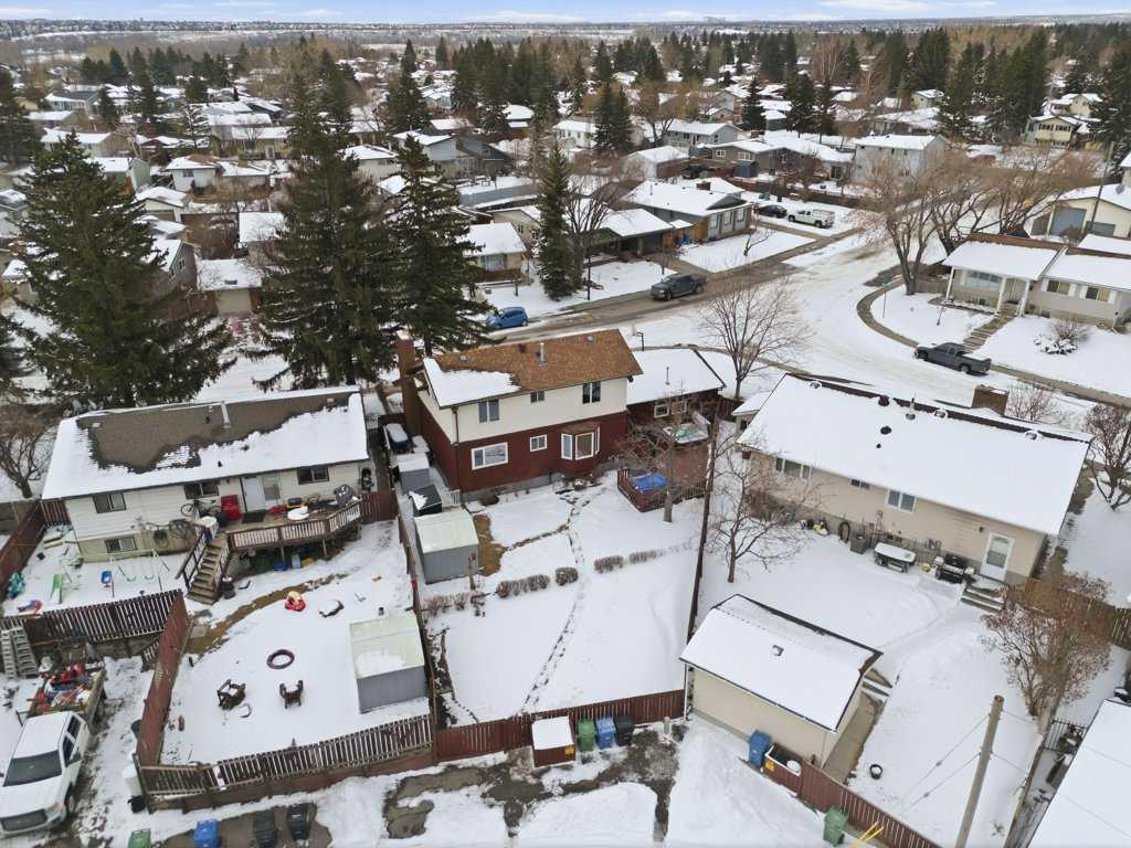 Welcome to this beautifully maintained home, nestled on a quiet, established street in the highly desirable community of Queensland. Situated on a massive corner pie lot, this property offers outstanding outdoor space, thoughtful updates, and exceptional value. Pride of ownership shines throughout, with meticulous care evident in every detail—creating a home that has been truly enjoyed for family living. Step inside to a welcoming foyer that opens into a spacious living room featuring a cozy wood-burning fireplace, a versatile dining (flex) area, and a bright kitchen complete with stainless steel appliances, ample cabinetry, and a sunny eating nook. The main level also includes a generously sized bedroom—ideal for a primary suite or guest space—alongside a convenient 3-piece bathroom. Upstairs, you’ll find three additional well-proportioned bedrooms, including a primary retreat with dual closets and cheater access to a 4-piece bathroom, offering a functional and flexible layout for families. The fully finished lower level expands your living space with a large recreation room, dedicated office, laundry area, and plenty of storage, including built-in shelving and a workshop. Step outside to an impressive backyard retreat set on an expansive pie-shaped lot, offering space, privacy, and endless potential. The fully fenced yard features a mature apple tree, spacious deck, hot tub, irrigation system, and three storage sheds—perfect for everyday living, kids, and pets. There is also convenient access to the rear alley. The oversized double front detached garage is heated, insulated, and equipped with built-in storage and a workspace, providing both function and versatility. Curb appeal is enhanced with Gemstone lighting on both the home and garage. Additional highlights include air conditioning, a VacuFlow central vacuum system, fresh neutral paint, newer kitchen appliances (2023), washer and dryer (2024), updated bathroom fixtures, and upgraded LED lighting throughout. The home has been meticulously well maintained, with exterior and fence painting completed just two years ago. Ideally located within walking distance to Fish Creek Park, and close to both public and Catholic schools—including elementary and middle schools just steps away—this home also offers easy access to Bow Bottom Trail and nearby amenities. Enjoy being part of a welcoming, family-oriented community with year-round activities such as skating and pickleball. A true gem—homes with lots like this seldom become available. This is your chance to own a beautifully cared-for property in one of Calgary’s most established and sought-after neighbourhoods.