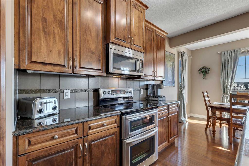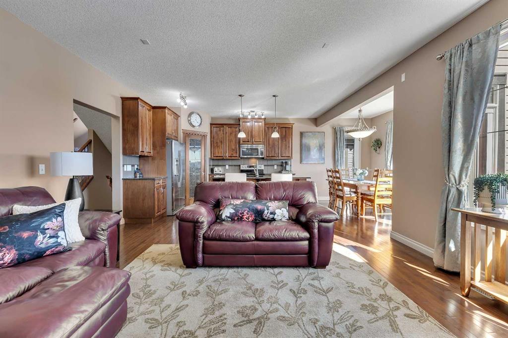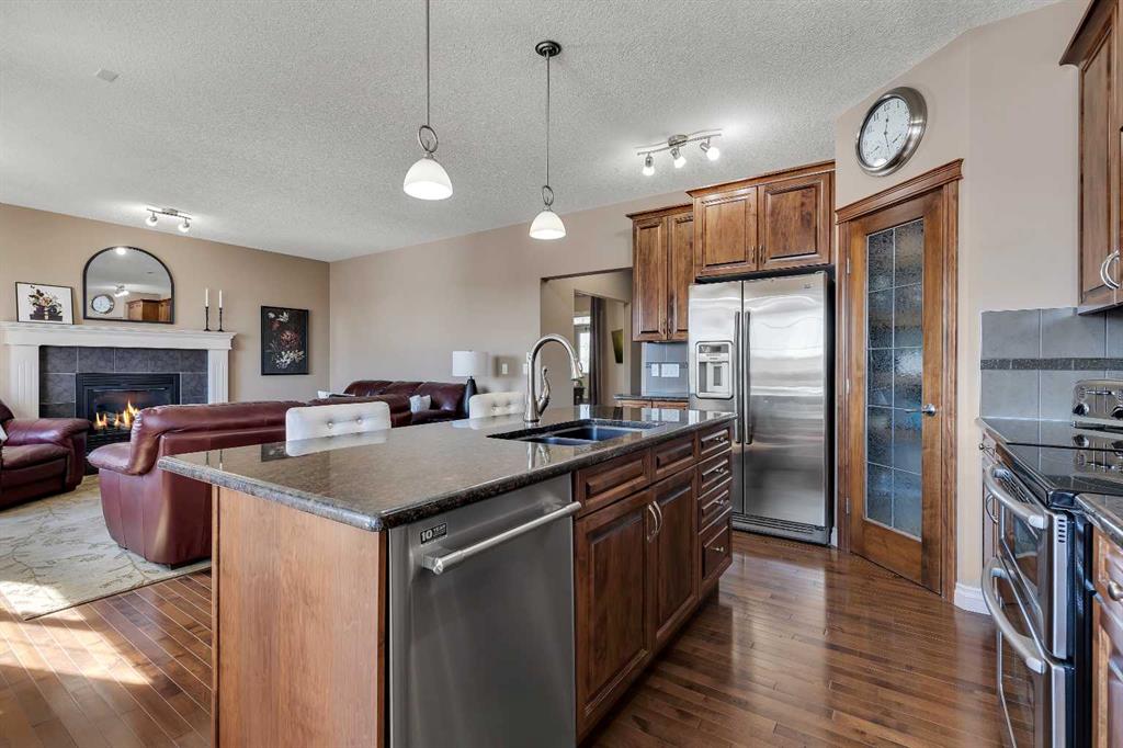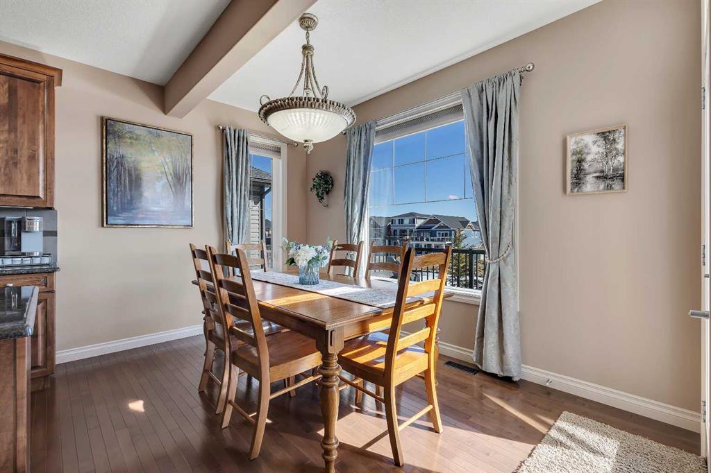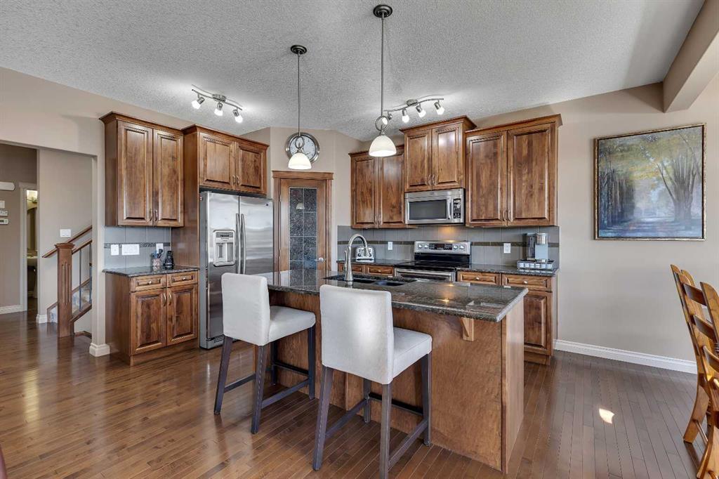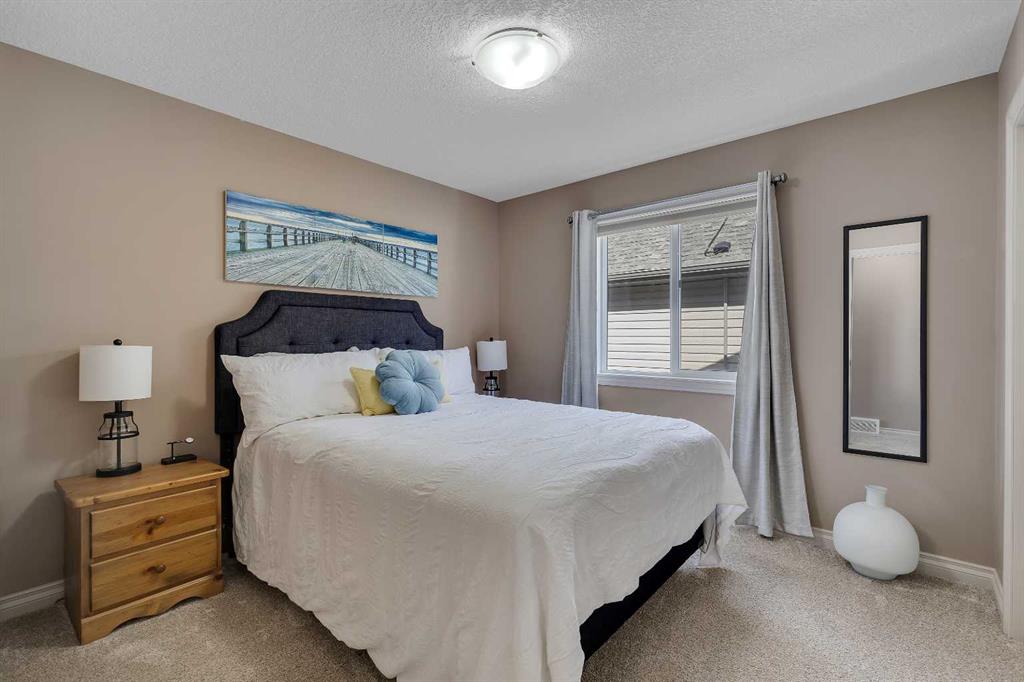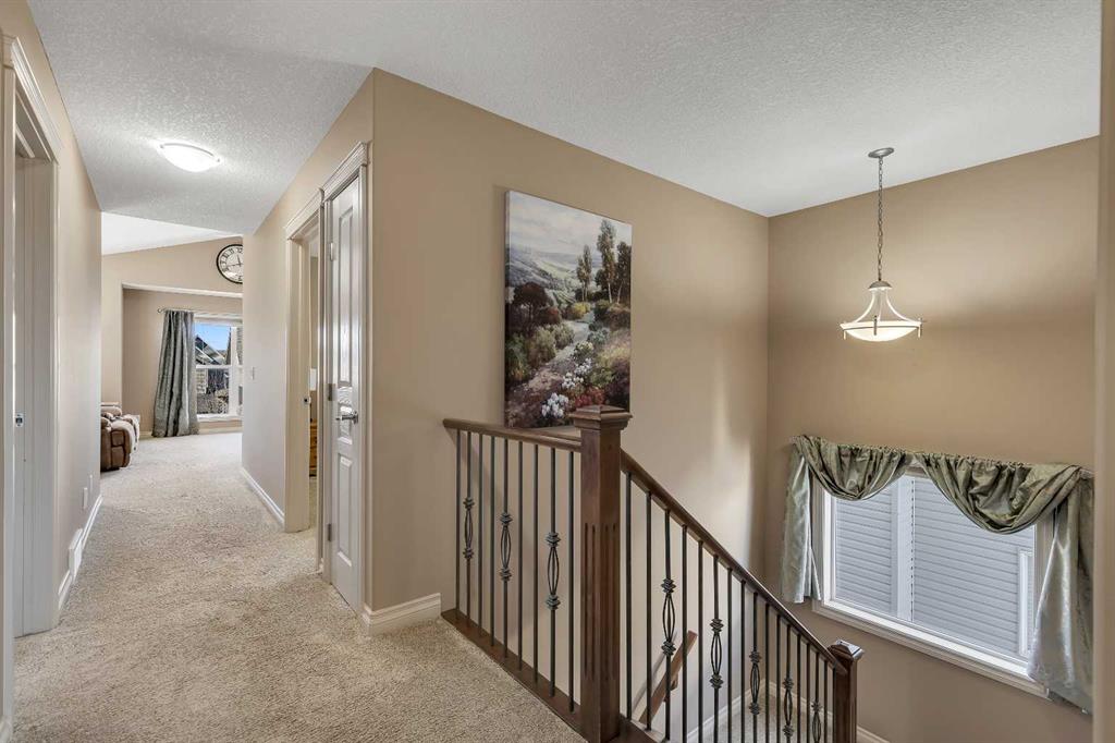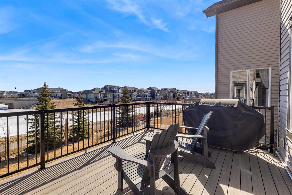 Location, Location, welcome to this beautifully maintained, original-owner home nestled on a quiet street in the desirable community of Bayside. Backing directly onto the scenic canal and pathway system, this property offers over 3,300 sq. ft. of developed living space, combining comfort, functionality, and exceptional outdoor living. This impressive home features 5 bedrooms and 3.5 bathrooms, along with numerous upgrades throughout, including 9’ ceilings, a vaulted bonus room, hardwood flooring, granite countertops, wrought iron railings, and upgraded stainless steel appliances. Additional highlights include two furnaces (with air conditioning on the upper level), rough-in for speakers on the main floor and in the ensuite, and an 11’ ceiling in the garage with extensive shelving for added storage. The main floor offers a thoughtful layout with a spacious great room featuring a cozy gas fireplace, a versatile flex room, convenient laundry area, and a stylish kitchen complete with a pantry, large island with eating bar, and a bright nook that opens onto the newer composite deck—perfect for enjoying picturesque canal views. A gas line is already in place for your BBQ. Upstairs, you’ll find a vaulted bonus room, four generously sized bedrooms, and a full 4-piece bathroom. The primary retreat includes a walk-in closet and a private ensuite, providing a perfect space to unwind. The fully developed walkout lower level expands your living space with a family room, additional bedroom, den, and a 4-piece bathroom, with direct access to the lower patio and backyard. The exterior is equally impressive, featuring manual underground sprinklers in the front yard and multiple outdoor living spaces designed to take full advantage of the tranquil waterfront setting. Ideally located close to schools, shopping, parks, and all amenities, this home truly reflects pride of ownership and offers an exceptional lifestyle in one of Bayside’s most desirable locations. Click on link to view 3D walk through.