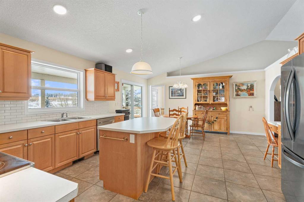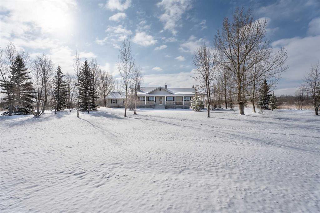 Welcome to the perfect blend of country living and modern versatility, ideally situated on 6 private, fully fenced acres just minutes from Okotoks. This well-maintained custom bungalow offers exceptional flexibility with up to 4,132 sq ft of potential living space, making it an outstanding opportunity for families, investors, or those seeking multi-generational living. The main residence features 1,680 sq ft above grade with a functional and inviting layout, including 3 spacious bedrooms and 2 full bathrooms. The bright, open-concept kitchen offers ample cabinetry, a central island with seating, and flows seamlessly into the dining nook and cozy family room. A charming wood-burning fireplace creates the perfect gathering space, complete with convenient hatch access to the garage for easy firewood storage. The primary retreat is generously sized and includes a large private ensuite, offering a comfortable escape at the end of the day. The 1,565 sq ft basement is already roughed-in and presents an incredible opportunity to customize and expand your living space to suit your needs. Adding even more value is the 886 sq ft LEGAL suite above the detached triple-car garage, featuring 2 bedrooms, 1 bathroom, a private entrance, and a proven rental history, ideal for generating income, accommodating extended family, or creating a private guest space. Recent updates include enhanced high R-value insulation (approx. R70) for improved efficiency and a newer roof, providing peace of mind for years to come. Outdoors, enjoy the serenity of acreage living with covered front and rear decks, mature landscaping, and a flat, usable yard perfect for a variety of uses. With no architectural controls and two potential access points, the property offers endless possibilities, whether you’re envisioning a home-based business, future shop development, hobby farm, or simply more space to live and grow. A rare opportunity to own a versatile acreage property in a highly desirable location, privacy, income potential, and lifestyle all in one.