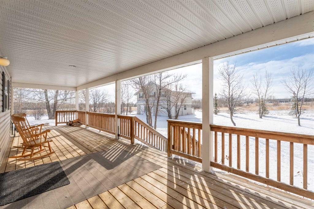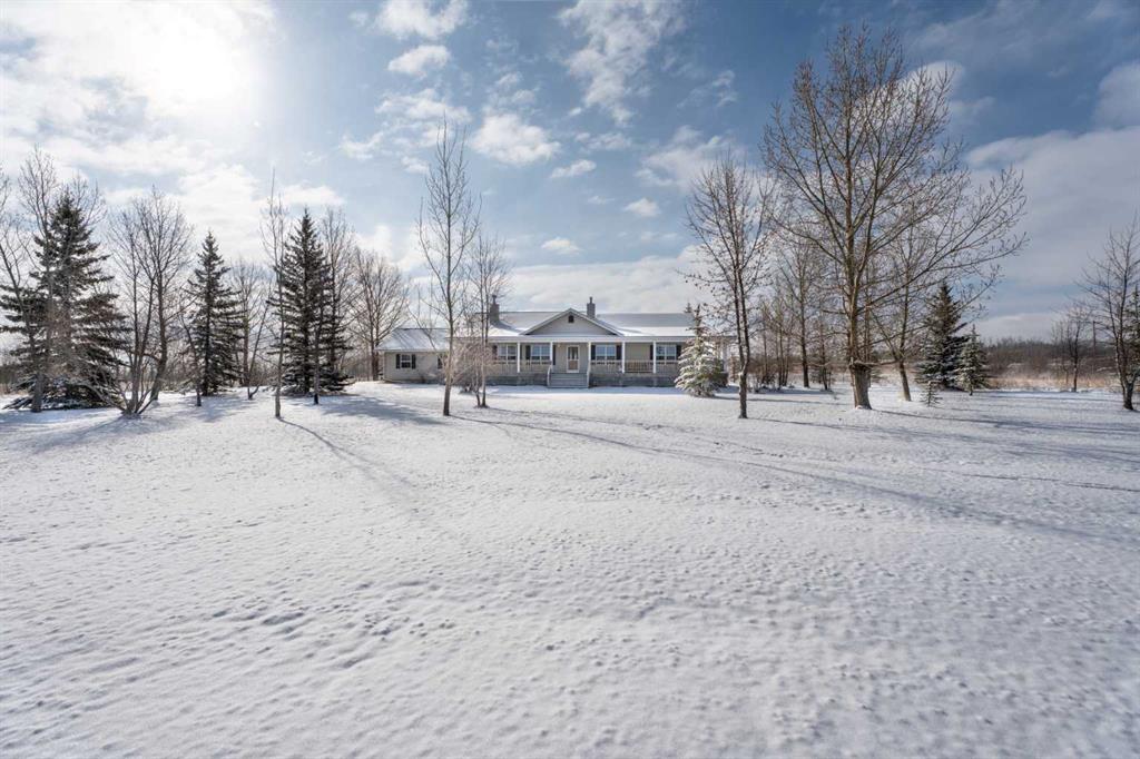 Welcome to the perfect blend of country living and modern versatility, ideally situated on 6 private, fully fenced acres just minutes from Okotoks. This well-maintained custom bungalow offers exceptional flexibility with up to 4,132 sq ft of potential living space, making it an outstanding opportunity for families, investors, or those seeking multi-generational living. The main residence features 1,680 sq ft above grade with a functional and inviting layout, including 3 spacious bedrooms and 2 full bathrooms. The bright, open-concept kitchen offers ample cabinetry, a central island with seating, and flows seamlessly into the dining nook and cozy family room. A charming wood-burning fireplace creates the perfect gathering space, complete with convenient hatch access to the garage for easy firewood storage. The primary retreat is generously sized and includes a large private ensuite, offering a comfortable escape at the end of the day. The 1,565 sq ft basement is already roughed-in and presents an incredible opportunity to customize and expand your living space to suit your needs. Adding even more value is the 886 sq ft LEGAL suite above the detached triple-car garage, featuring 2 bedrooms, 1 bathroom, a private entrance, and a proven rental history, ideal for generating income, accommodating extended family, or creating a private guest space. Recent updates include enhanced high R-value insulation (approx. R70) for improved efficiency and a newer roof, providing peace of mind for years to come. Outdoors, enjoy the serenity of acreage living with covered front and rear decks, mature landscaping, and a flat, usable yard perfect for a variety of uses. With no architectural controls and two potential access points, the property offers endless possibilities, whether you’re envisioning a home-based business, future shop development, hobby farm, or simply more space to live and grow. A rare opportunity to own a versatile acreage property in a highly desirable location, privacy, income potential, and lifestyle all in one.