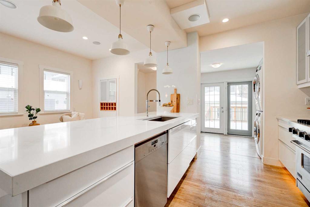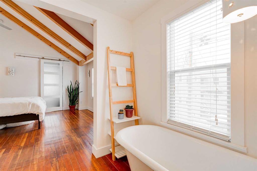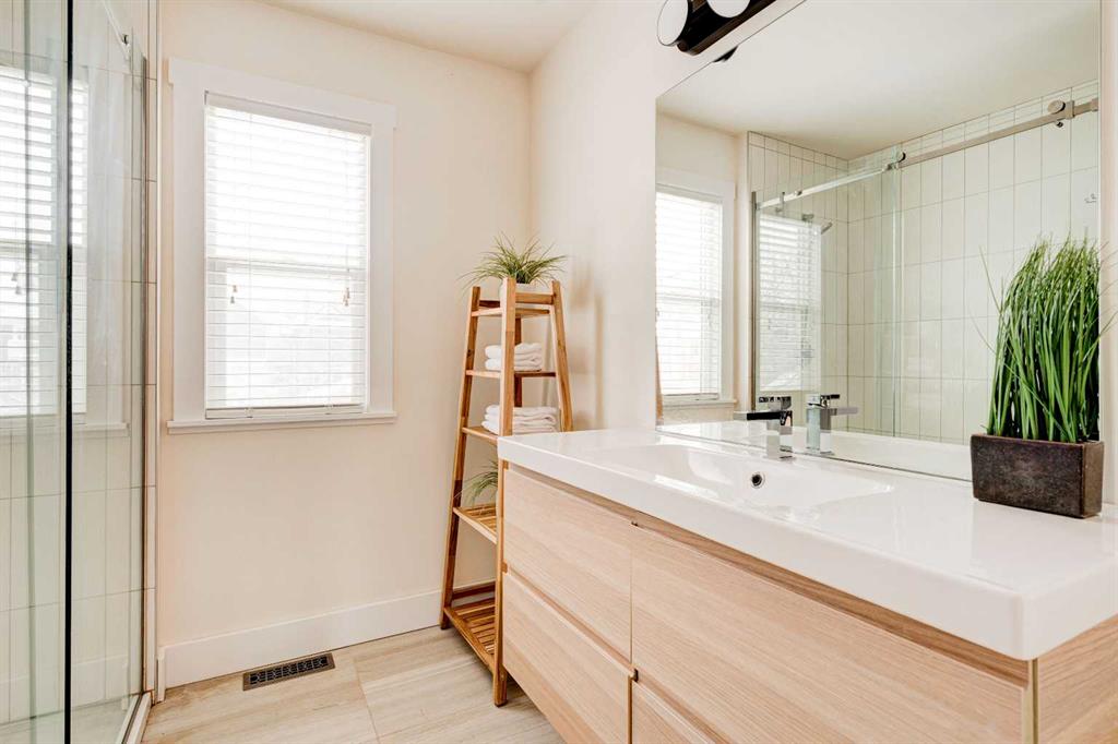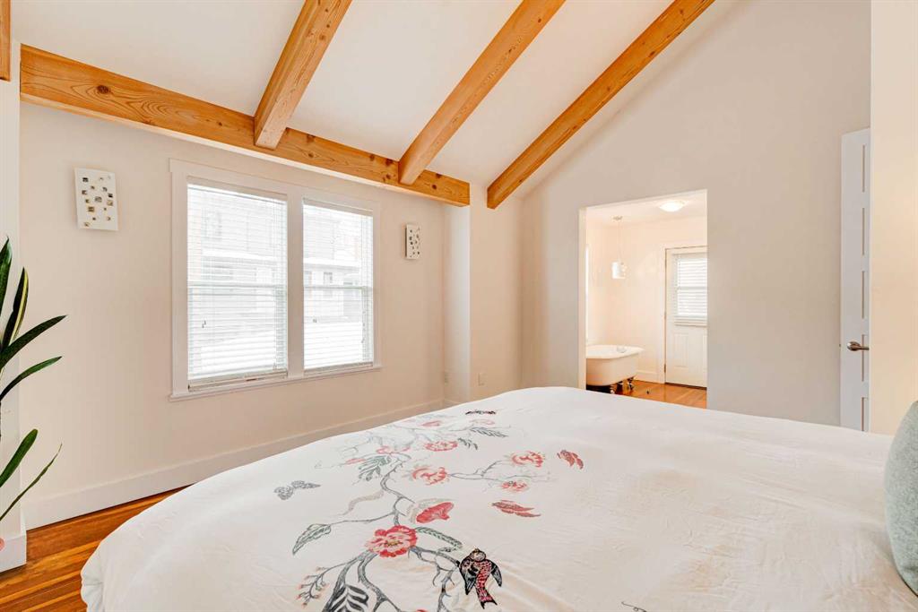 Set on one of Cliff Bungalow’s special and most charming streets, shared with just seven other homes, this turnkey, renovated character home is as special as its setting. With undeniable curb appeal, it sits on a 25 x 140 ft lot directly across from a park and just steps from the Montessori school. It is the kind of location people wait for. Arrive home and spend warm afternoons on the front veranda, soaking in peaceful park views, or step inside to unwind. The interior strikes a perfect balance between timeless character and clean, modern updates. The main floor offers a bright, open-concept layout that flows effortlessly between the living, dining, and kitchen spaces. It feels social, functional, and full of warmth. The kitchen is crisp and understated, featuring white cabinetry, quartz countertops, stainless steel appliances (new Miele dishwasher, new hood fan, serviced Viking stove), and a generous island that naturally becomes the heart of the home. A convenient powder room completes the main level. The living area is anchored by a sleek fireplace and framed by large windows that fill the space with natural light throughout the day. Designed with entertaining in mind, the layout leads seamlessly to the new back patio, overlooking the yard and double garage. It is perfect for summer evenings and weekend gatherings. Upstairs, the primary retreat feels like a hidden gem. Vaulted ceilings, exposed beams, and hardwood floors create a cozy yet elevated atmosphere. A spacious walk-in closet and a beautifully renovated ensuite, with a clawfoot tub and glass shower, add to the sense of calm. A private upper patio overlooks the west-facing yard. The second bedroom is bright and spacious, overlooking the front yard, with an additional 3-piece bathroom just down the hall. The fully developed lower level adds even more versatility, offering an additional bedroom, currently used as an office, a flexible rec room, storage space with potential for a second kitchen, plus laundry and another 3-piece bath. With zoning already in place, there is also the option to develop a secondary suite in the future. Behind the scenes, the important updates have all been taken care of, including a new top of the line smart furnace, hot water tank, built-in speakers, improved insulation, updated siding, new gutters, new garage door, landscaping, new faucets, millwork, plumbing pressure system, new front steps, ongoing exterior maintenance and more!. This is one of those homes that simply feels right the moment you walk in. It is full of character, thoughtfully updated, and perfectly located just steps from Mission, 17th Avenue, river pathways, and downtown.