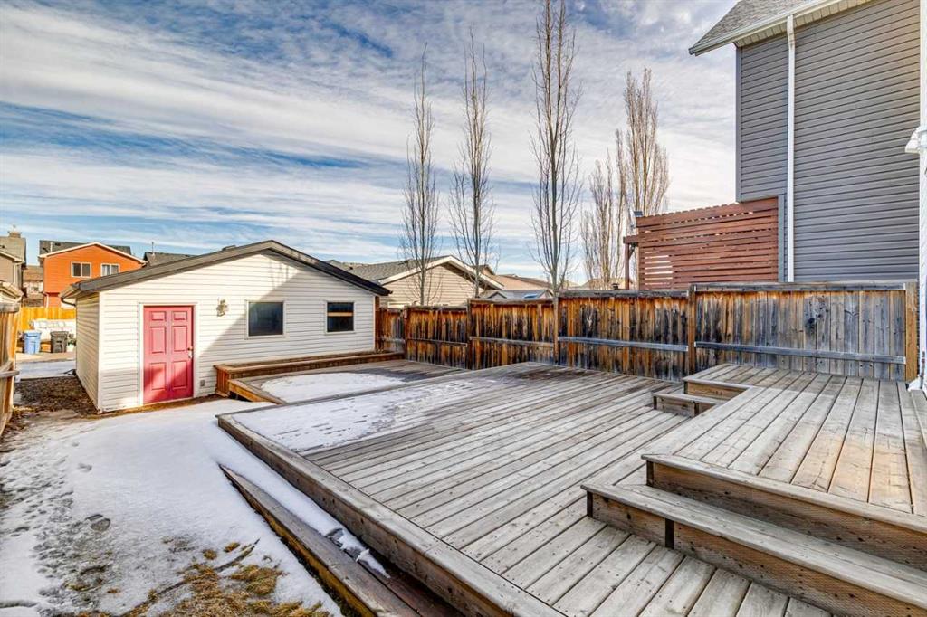 Welcome to this immaculately maintained home in the sought after community of Auburn Bay! The main level features oak hardwood floors, a spacious living room with a 3-sided fireplace, a dining room and kitchen with ample cabinet and counter space, as well as stainless steel appliances including a gas stove/convection oven! Upstairs you will find the primary bedroom with a 3pc ensuite, 2 additional well-sized bedrooms and another 4pc bathroom. The basement is fully finished with a living room, an additional bedroom, a 4pc ensuite bathroom and extra storage space. The backyard features a beautiful 3-level deck and a double detached garage with a paved alley! Upgrades to this home include a NEW roof (2021), a recently treated deck (2021), a Kinetico water softener and a Nilfisk central vacuum system. The home is fully wired with CAT5 for those working from home. With it's close proximity to the lake / club house, the hospital, the YMCA and many shops / restaurants, this home has it all.