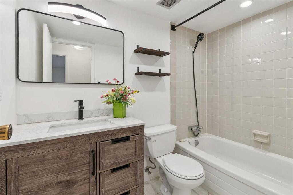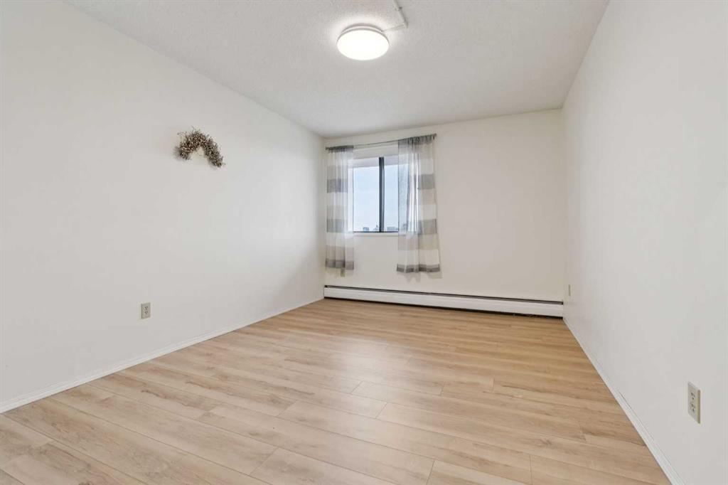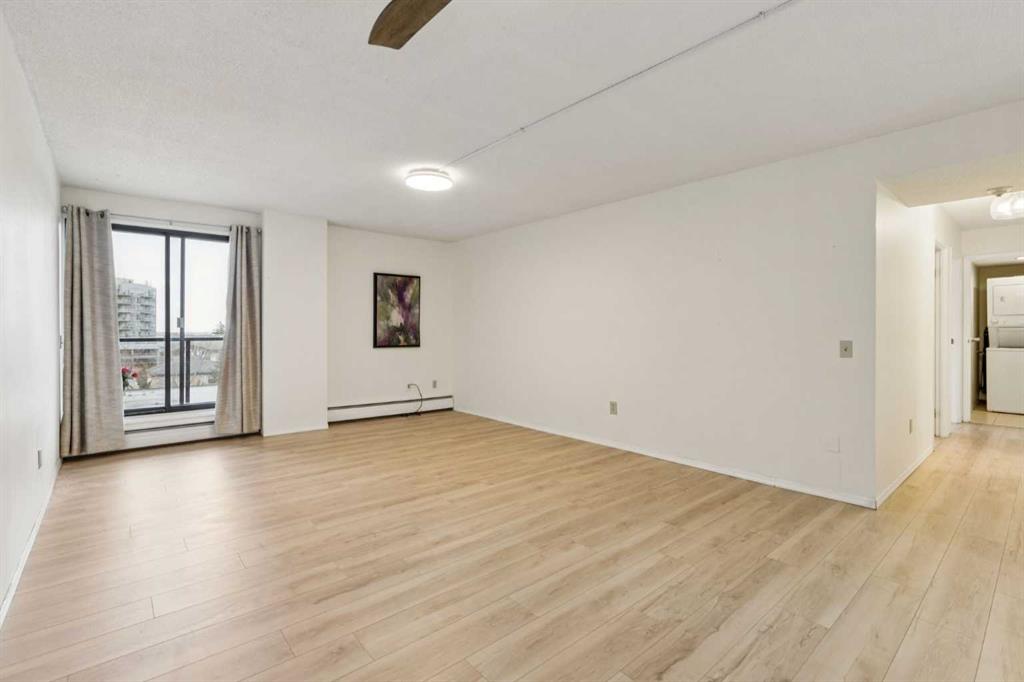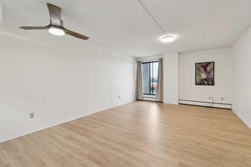 This is a large 2-bedroom, 1 bathroom, 860 SQ foot, 5th floor CORNER UNIT condo, in a concrete building, just off trendy 17th Avenue, but far enough away to enjoy the tranquility of what the Killarney community has to offer. From the TWO PRIVATE BALCONIES you will get a great look at the downtown skyline and from the other, a panoramic south view as far as the eye can see ! Between the two there is about 300 square feet of patio, with one of them catching the Calgary sunshine all day. Recently updated with a brand-new kitchen, including new cupboards, counter tops, and new S/S appliances, the 4-piece bathroom also had an impressive re-fresh, and there is new Luxury Vinyl plank flooring throughout the entire space! You will appreciate how spacious each of the bedrooms are, as they will fit virtually any size bed and bedroom furniture! The living room/ dining area are open to the kitchen and can accommodate a full-size dining table and still give you lots of options of how to place your furniture! No need to downsize in this space, in fact you may want to go buy a bigger couch ! The IN-SUITE LAUNDRY area features a full-size stackable washer & dryer and is conveniently tucked away at the end of the hallway. With only 6 floors, there will be virtually no waiting for the two elevators to take you up to your corner unit, access to the 7th floor ROOF TOP PATIO, or down to your HEATED & SECURED UNDERGROUND PARKING STALL. And if you have a special furry friend, they are most welcome with board approval. The condo fees cover heat & water, your will only need to pay for electricity ! Killarney is a wonderful community home to walking & bike pathways, parks, a community garden, outdoor courts, the Killarney pool, skating rinks, shopping, transit, and dog parks, all within walking distance ! Also close by is the Shaganappi golf course, the C-train, trendy restaurants, coffee shops, yoga studios, and more ! With easy access to Crowchild trail and Westbrook mall, you won’t have to travel far for anything ! This is inner city living without all the problems of being downtown. Wheelchair access at the front will make moving in a breeze, so what are you waiting for? Call your favorite Realtor® and come see this one soon !