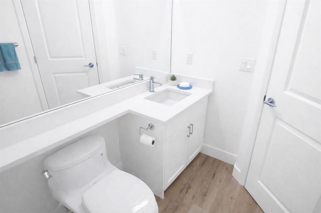The spacious primary bedroom offers a relaxing retreat with a walk-through closet customized by California Closets and a private, spa-inspired ensuite complete with a deep soaker tub. A second well-sized bedroom and a full bathroom with a walk-in shower provide flexibility for guests, family, or a home office. The convenience of in-suite laundry adds to the ease of everyday living.