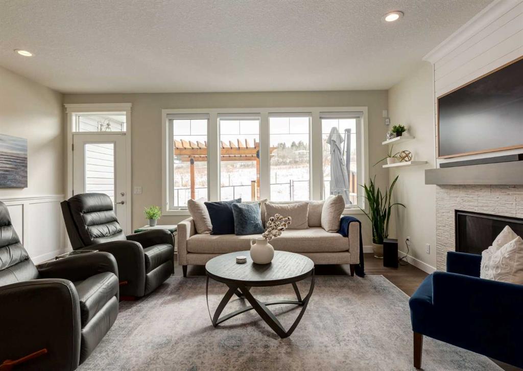 Welcome to this stunning bungalow in the highly desirable community of Crestmont, where modern design meets warmth, character, and everyday functionality. From the moment you step inside, you’re greeted by a spacious foyer that sets the tone for the home’s thoughtful layout and inviting feel. The main floor offers just over 1,500 sq ft of beautifully designed living space, filled with natural light and elevated by stylish, carefully selected finishes. At the heart of the home, the open-concept living area seamlessly connects the kitchen, dining, and living room—creating the perfect space for both entertaining and everyday living. A cozy gas fireplace anchors the living room, adding comfort and charm year-round. The main level features two well-sized bedrooms, including a stunning primary retreat complete with a luxurious 4-piece ensuite. The mudroom is both practical and spacious, offering built-in functionality along with conveniently located main floor laundry. The fully finished basement continues to impress with an expansive family and recreation space, ideal for movie nights, hosting, or simply unwinding. A custom bar with bar fridge adds an extra layer of entertainment, while the third bedroom and versatile den provide flexibility for guests, a home office, or a personal gym. A second fireplace enhances the cozy atmosphere downstairs, making this level just as inviting as the main floor. Step outside and you’ll find your own private backyard escape, complete with a beautiful deck, hot tub, and pergola. Backing directly onto a serene green space with no neighbours directly behind, you’ll enjoy an added sense of privacy and uninterrupted views—perfect for relaxing evenings or entertaining friends and family. With a spacious oversized heated garage with mezzanine for storage/height for a lift and many other thoughtful details throughout, this home truly offers a perfect balance of style and function, with something to appreciate in every corner. Located in Crestmont, you’ll love the peaceful, community-oriented feel paired with unbeatable access to the mountains, making weekend getaways quick and effortless, while still enjoying convenient access to the city, nearby amenities, and scenic walking paths. Click on the video in the media link and book your private showing to view this exceptional opportunity.