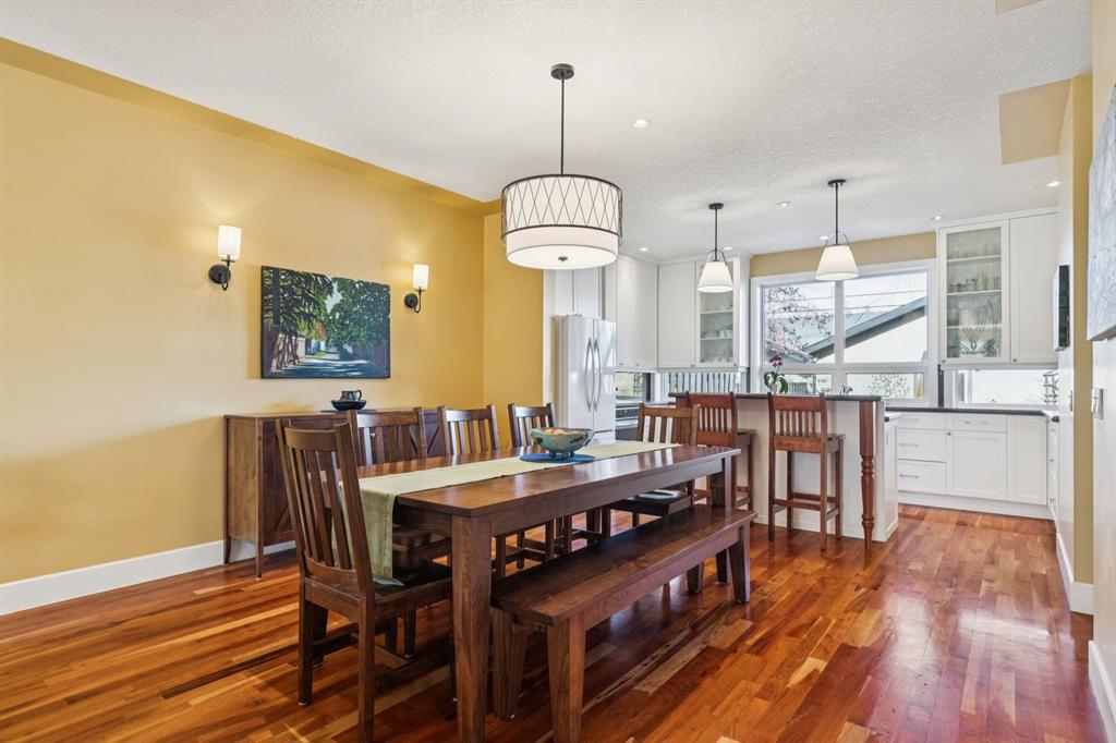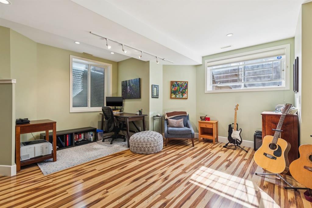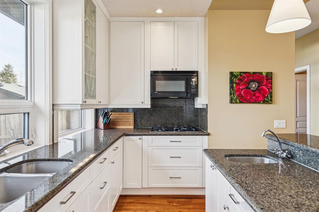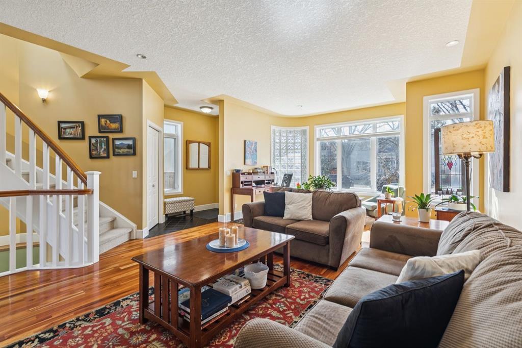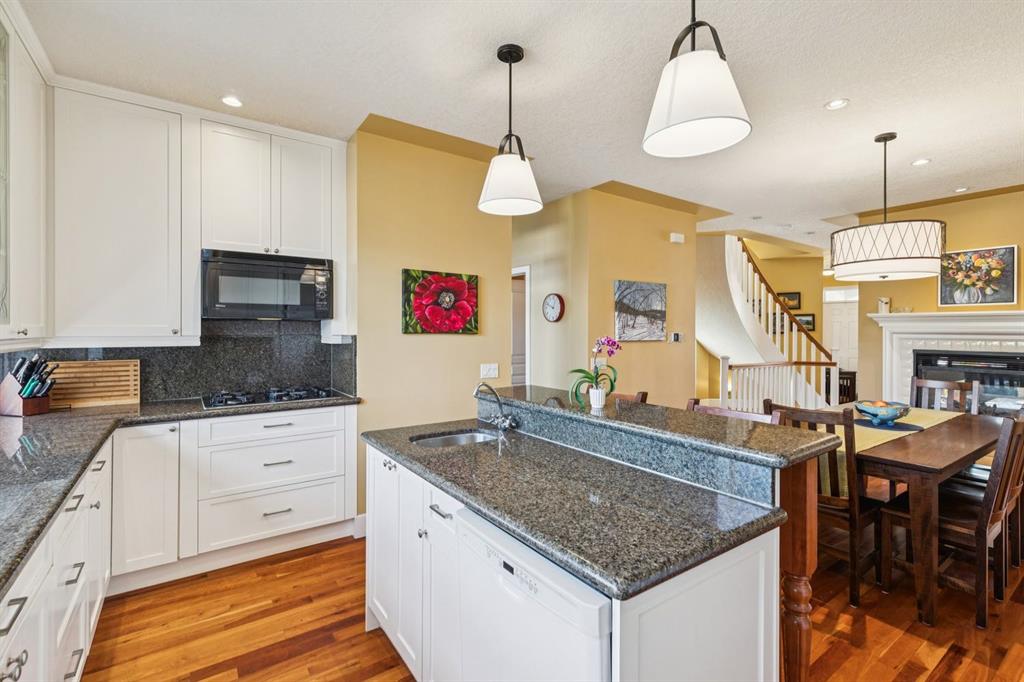Welcome to this beautifully appointed South facing home in the highly sought after community of West Hillhurst, where inner city living meets nature and convenience. Perfectly situated just steps from the Karl Baker Off-Leash Dog Park, Helicopter Park, the scenic Bow River pathway system, and Foothills Hospital, this home also offers quick access to trendy Kensington, exceptional dining, and Calgary’s vibrant downtown core. As you walk up the beautifully landscaped front, you’ll notice a charming outdoor sitting area creating an inviting space to relax and greet passing neighbours. Inside, the main floor showcases rich hardwood flooring and a thoughtfully designed open concept layout. A bright front den/living room features a stunning two-way gas fireplace that seamlessly connects to the dining area and kitchen, ideal for both everyday living and entertaining. The kitchen is a culinary delight, complete with a central island, raised breakfast bar, prep sink, granite countertops, and an abundance of white shaker cabinetry, including elegant glass front display cabinets. Superior appliances include a gas cooktop and built-in oven. A functional mudroom leads to a convenient 2pc bathroom and provides access to the rear patio and double detached garage. A graceful curved staircase leads to the upper level, where vaulted ceilings and a skylight create an airy, light filled ambiance. This level offers three generously sized bedrooms, a full bathroom, and convenient stacked laundry. The spacious primary retreat is a true highlight, featuring a private front balcony where you can enjoy morning coffee or unwinding with a book, along with room for a sitting area. The luxurious 5pc ensuite includes a soaker tub, separate shower, and a custom walk-in closet. The fully developed lower level offers even more living space, with durable laminate flooring, a large recreation room with built-in bookshelves, a bar area with sink, and oversized windows that bring in plenty of natural light. A dedicated media room with a full wall of storage and a 3pc bathroom completes this level. Step outside to the rear patio, an ideal setting to host friends and family or simply relax and enjoy your own private oasis. This exceptional home combines style, comfort, and an unbeatable location making it perfect for professionals, families, and anyone looking to experience the best of inner city Calgary living.