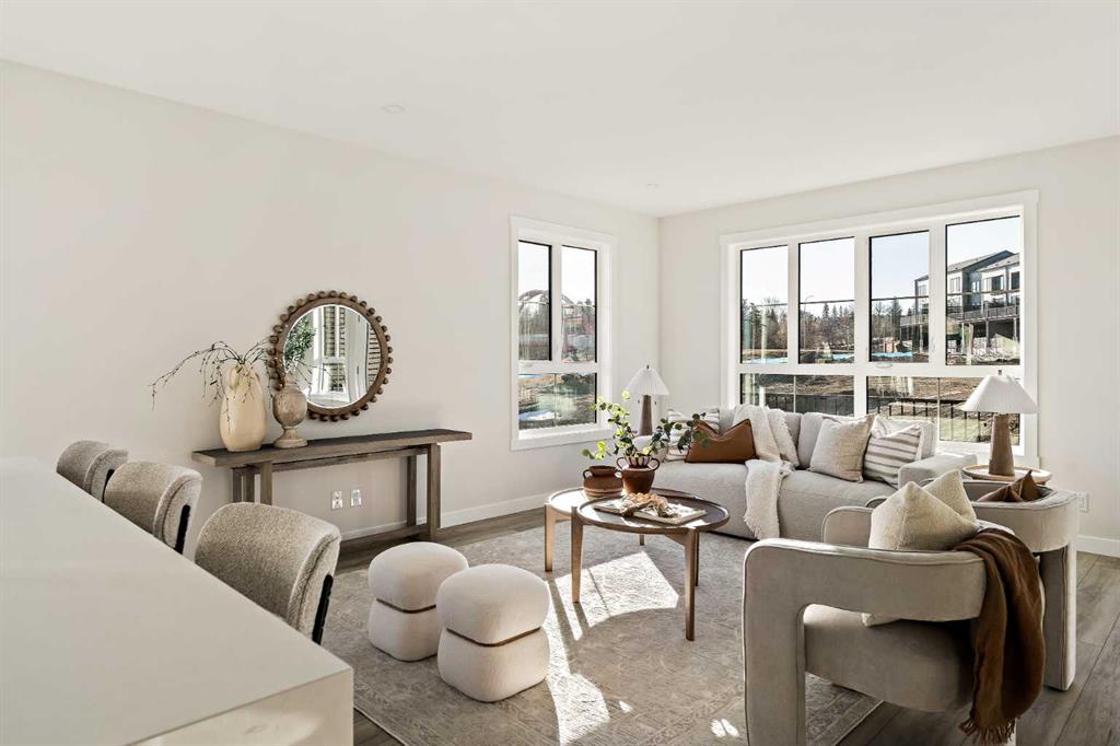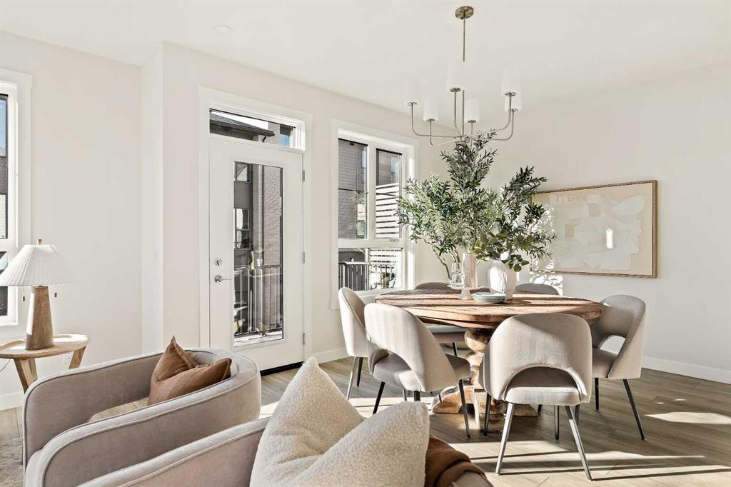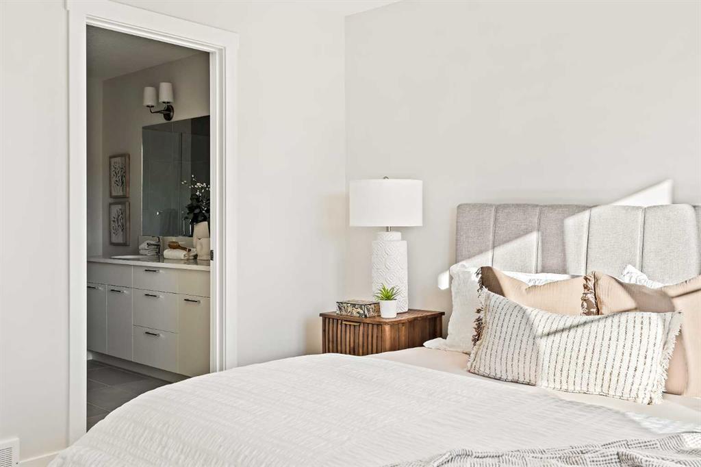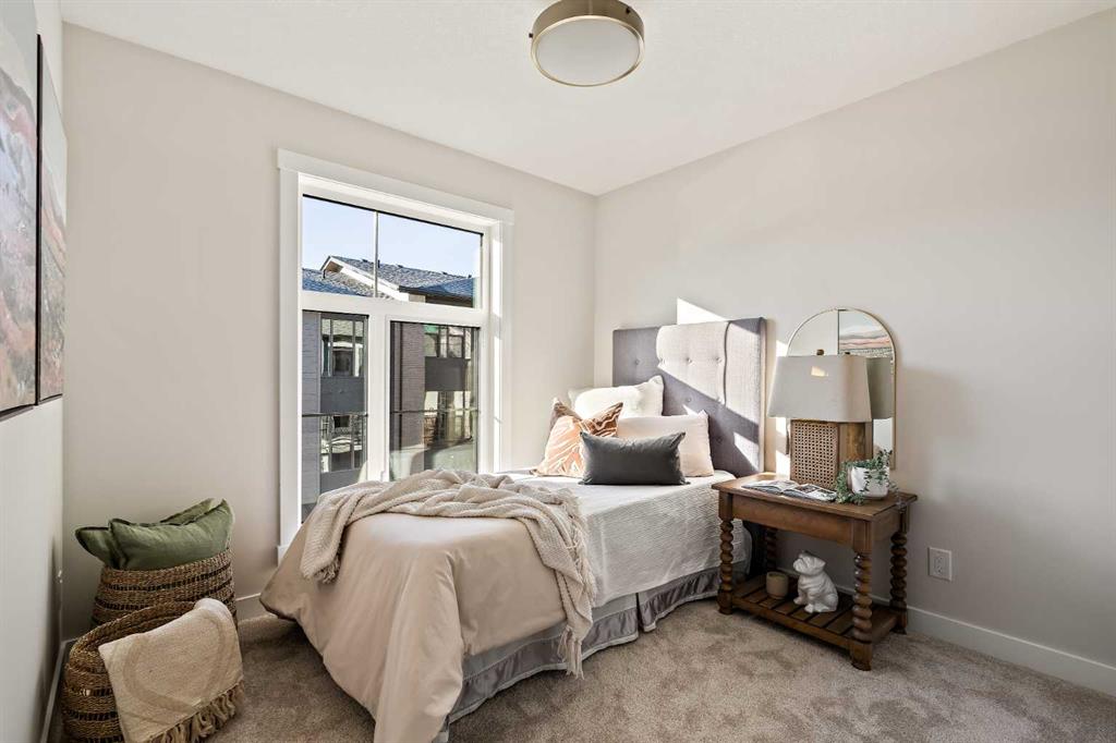 Welcome to the Torrey at Crown Park - an exceptional opportunity offering a brand-new townhouse featuring 3 bedrooms, 2.5 bathrooms, and a private double-attached garage. Offering over 1,500 ft² of thoughtfully designed living space, this end-unit townhome is one of the last remaining opportunities and is perfectly positioned within the development. Large, west-facing windows bring in natural light throughout the day, creating a bright and comfortable living environment. The bright and open main living area showcases a stunning kitchen with endless upgrades, including built-in appliances, quartz countertops, and timeless white cabinetry. Designed with entertaining in mind, the kitchen flows seamlessly into the expansive main living area, creating the perfect space for gatherings or everyday living. Large west-facing windows throughout the main level enhance the sense of space and light, creating a welcoming atmosphere year-round. The impressive great room offers ample space for virtually any furniture configuration and opens directly into the large dining area, allowing for a seamless transition between spaces. The main level is complete with a 2-piece powder room and direct access to the sprawling 26' balcony that spans the width of the home. The outdoor living space is equipped with a BBQ gas line and hose bib, adding everyday convenience and making it easy to enjoy outdoor living. The upper level has been thoughtfully designed, with the primary suite spanning the width of the home while the secondary bedrooms and main bathroom are positioned on the opposite end for added privacy. The ~12' x 12' primary bedroom easily accommodates a king bedroom suite and includes a walk-in closet and private 4-piece ensuite featuring dual sinks and a walk-in tiled shower. The upper level is completed by two additional bedrooms, a full bathroom, and convenient upper-floor laundry. The flexibility of three bedrooms makes this home ideal for families, guests, or a dedicated home office, offering excellent long-term versatility and value. The entry level provides access to the private double attached garage, which includes additional space for storage along with a large dedicated storage room, keeping everything organized and secure year-round. Located in Crown Park - one of Calgary’s last remaining inner-city developments - just minutes from downtown, this home offers exceptional convenience with major transportation routes, amenities, and green spaces all close by. Perfect for first-time buyers, investors, or those seeking a lock-and-leave lifestyle with maintenance-free living, this brand new home is backed by a comprehensive builder warranty and Alberta New Home Warranty, allowing you to purchase with confidence and peace of mind. **Please note: Photos are of a previous show unit and are not an exact representation of the property for sale.