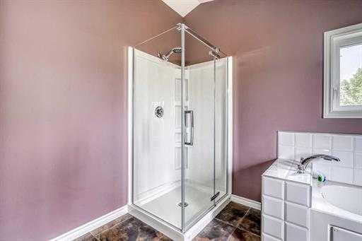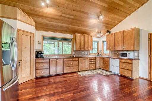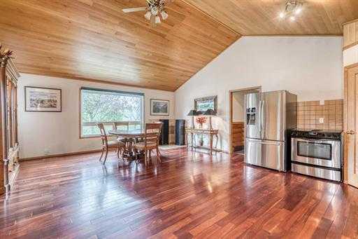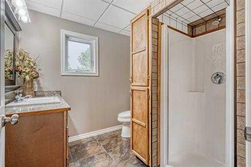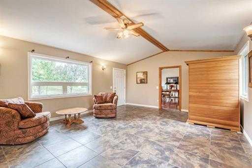 Calgary (under an hour), Airdrie (45 min), or Drumheller (20 min). The home rests beautifully amongst a variety of mature trees and rolling landscape… walk the property and pick saskatoon berries off the bursting bushes, and in the winter, enjoy the amazing toboggan hill and flat meadow as a great place to build a hockey rink. With 2,543sq’ above grade, there is plenty of room in this home where pride of ownership boasts stunning condition. Develop the 817sq’ unfinished basement for a total of 3,360sq’. 3 bedrooms, 3.5 bathrooms, this home would be fantastic as a multi generational home, Bed & Breakfast, or AirBnb. Enter the home to find a spacious foyer leading to the converted log cabin turned bedroom! Complete with vaulted paneled ceiling, lofted storage and half bath. An additional 4-piece bathroom can be accessed from the hallway. The mudroom features of storage and front load washer and dryer. Acting as a secondary entrance to the home, the mudroom can be entered through the expansive east facing enclosed porch. The heart of the home is the massive kitchen with hardwood floors and vaulted ¼ sawn white oak paneled ceiling detail. The spacious family room and living room features a Mt Vernon Quadrafire 50lb hopper pellet stove and access to a west facing deck. Another bedroom and 3-piece bathroom complete the main level. Upstairs in the master retreat! Vaulted ceilings, spacious walk-in closet, 4-piece ensuite with soaker