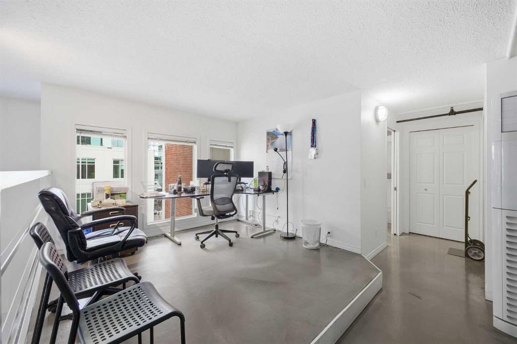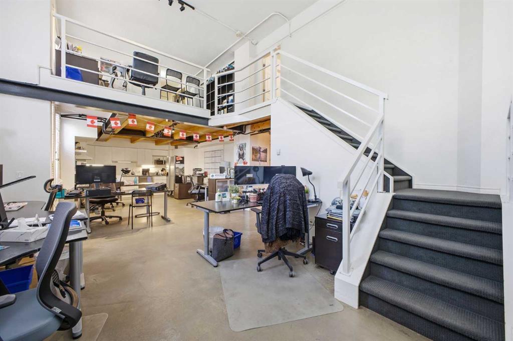 Have you ever dreamed of living or working in Manhattan? This is Calgary’s answer to that iconic urban lifestyle. With flexible zoning that permits both residential and commercial use, this exceptional two storey loft can be your home, your office, or a seamless blend of both. Currently configured as office space, the unit offers soaring 16’ ceilings and over 1,200 sq ft of living space that can easily be reimagined into a sophisticated loft residence. The main level features an expansive living/dining area with an industrial aesthetic, open to the kitchen for effortless flow. A convenient 2 piece powder room and generous storage complete this level. A striking staircase leads to the lofted upper floor, where you’ll find a spacious bedroom, a versatile den or office, and a 5 piece bath. Units 301 and 303 are being sold separately; however, if purchased together, they can be seamlessly connected to create a truly spectacular space. If only one unit is purchased, the access point between them will be professionally sealed. Additional highlights include in suite laundry, a west-facing balcony, one assigned parking stall, and one assigned storage locker. Set in the heart of Calgary’s premier dining and entertainment district—and just a short walk to the downtown core—this location delivers the ultimate urban convenience and energy.