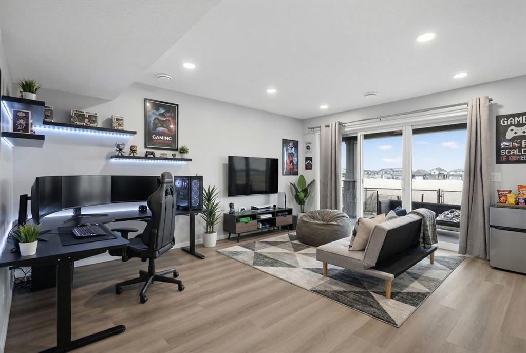 A main floor office with French doors creates a dedicated workspace, while upstairs, the bonus room provides additional living space. The primary suite is a true retreat, featuring a beautifully appointed 5-piece ensuite with a soaker tub and separate shower. Two additional generously sized bedrooms, both with walk-in closets, along with upper-floor laundry, complete the level.