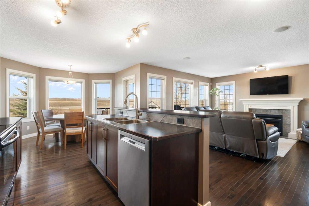 Step inside to a bright and functional open-concept main floor, where large windows flood the home with natural light while showcasing picturesque views of the green space beyond. The spacious kitchen flows seamlessly into a cozy living area with a fireplace, while the flexible dining space is perfect for both everyday meals and entertaining. Stay cool all summer long with central air conditioning for added comfort.