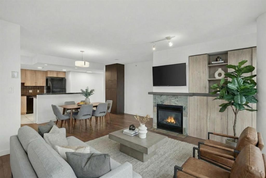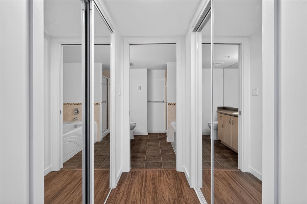 Sunny southwest exposure fills the home with natural light throughout the day, while the spacious balcony offers Bow River views, perfect for relaxing or entertaining.