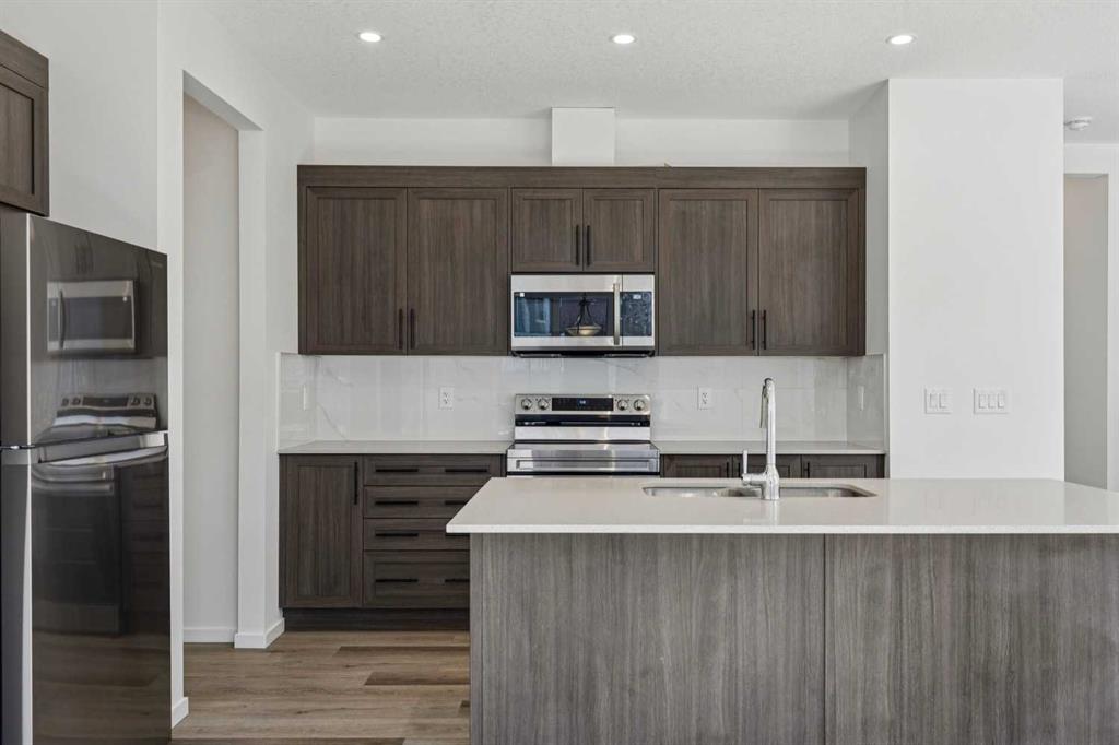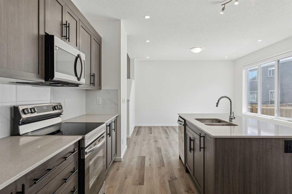 Step into a home that feels brand new—because it practically is. Lovingly maintained and only lived in for just over a year, this exceptional property offers modern comfort, thoughtful design, and outstanding value in the community. From the moment you enter, you’re welcomed by a bright, open-concept main floor featuring expansive windows that flood the space with natural light. Stylish vinyl plank flooring flows seamlessly throughout. The contemporary kitchen is the heart of the home, complete with a large island, stainless steel appliances, and ample space for entertaining. A convenient 2-piece powder room completes the main level. Upstairs, you’ll find three generously sized bedrooms, including a beautiful primary retreat with a walk-in closet and a luxurious 4-piece ensuite showcasing a double vanity. A versatile family room, an upper-level laundry room, and an additional 4-piece bathroom provide comfort and functionality for everyday living. Adding incredible value is the fully LEGAL basement suite with a separate entrance—perfect for extended family or rental income. This well-appointed space includes a bedroom, 4-piece bathroom, den, and a modern kitchen with breakfast bar seating. There is a second washer and dryer in lower suite. There is a TANKLESS hot water system providing unlimited hot water for the entire home. Offering unmatched value for a single-family home with a legal suite, this is a rare opportunity to own a nearly new home that truly has it all.