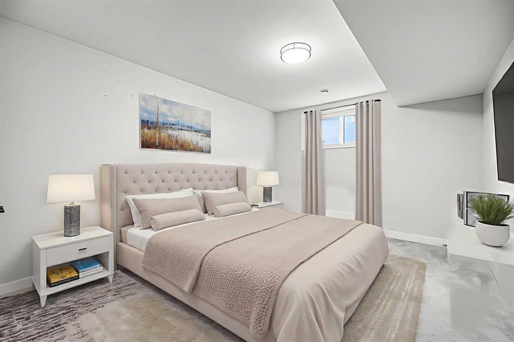 Experience waterfront luxury in this recently completed custom build on a premium, extra large 50-ft walkout lot. Backing onto tranquil waterfront and scenic pathways in Chestermere’s Waterford community, this home showcases over 4,500 sq ft of living space, and $150K in premium builder upgrades. The main level features large format polished marble tile, a chef’s kitchen with maple cabinetry, marble countertops, and a spice kitchen fully equipped with upgraded appliances. An elegant living area with gas fireplace, beautiful open-tread staircase, and a full width glass-railed deck overlooking the water. Upstairs includes a family room overlooking the open-to-below great room, four bedrooms, a spa-inspired primary ensuite, a junior primary with ensuite, and large laundry with a sink and extra storage. The walkout 2 bedroom basement is a legal secondary suite, fully developed by the builder to match the professional craftsmanship of the upper levels—perfect for multi-generational living or rental income. Complete with a triple car garage, dramatically impressive lighting upgrades, and extensive maple millwork and custom feature walls, this home defines modern waterfront living in Chestermere.
