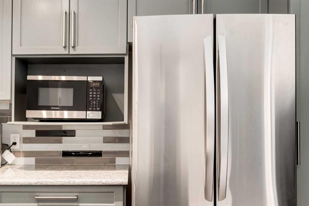 This beautifully maintained and updated two-storey home features strong curb appeal and a functional, light-filled layout. A charming east-facing front deck welcomes you, while soaring floor-to-ceiling windows bring in soft natural light. The open-concept main floor showcases a two-sided fireplace and flows into a well-appointed kitchen with granite countertops, a large island, peninsula seating, and ample cabinetry and pantry storage.
