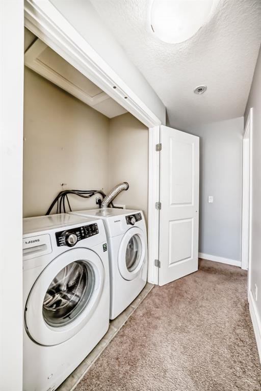 Beautifully maintained 2-storey townhouse condo built in 2013, offering 3 bedrooms, 3 bathrooms, and a front-attached garage. The open-concept main floor features a modern kitchen with stone countertops, black appliances, and a bright living and dining area.