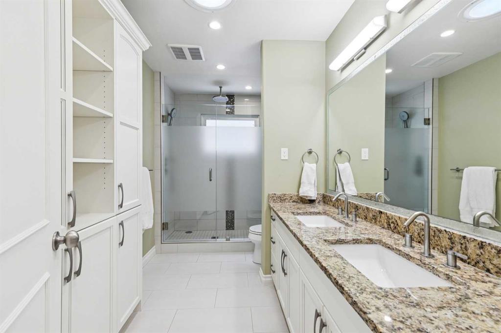 Interior:beamed ceilings, bookcases, built-in features, ceiling fan(s), central vacuum, double vanity, granite counters, high ceilings, no animal home, no smoking home, pantry, recessed lighting, skylight(s), soaking tub, storage, track lighting, vaulted ceiling(s), walk-in closet(s)
