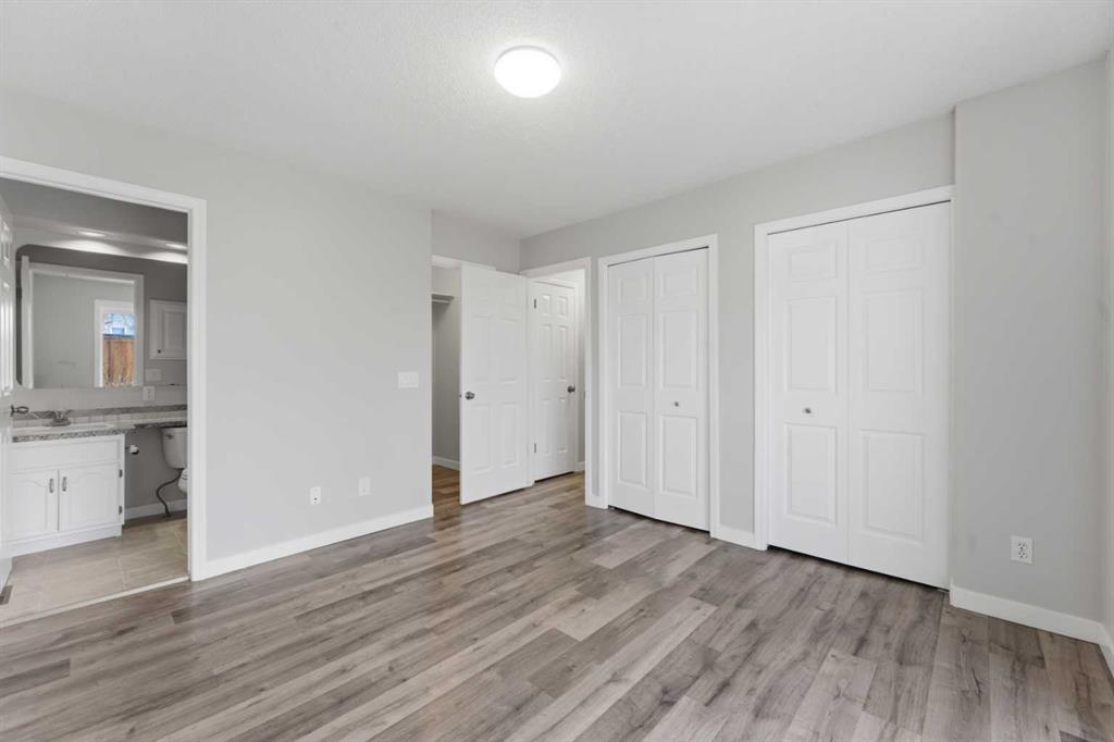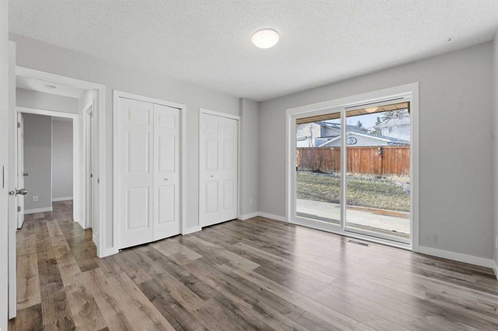 Upstairs, the primary bedroom is designed with convenience in mind, featuring three closets for practical storage, a private ensuite, and direct access to the backyard. Whether it’s morning coffee outside or easy access for pets, this connection to the yard adds a layer of day-to-day ease. A second bedroom and full bathroom provide flexibility for guests, or visiting grandchildren.