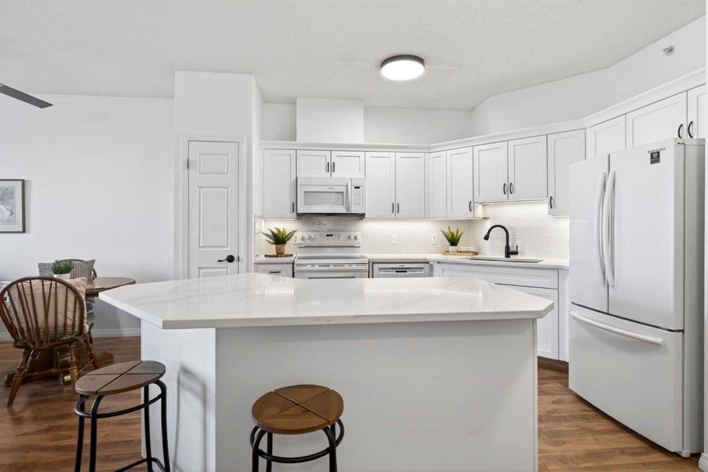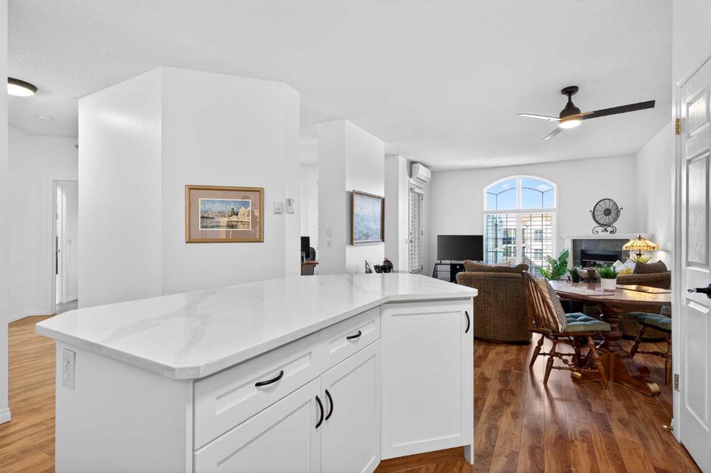 Welcome to the highly sought-after Phoenician in Dalhousie. This immaculately maintained unit features a PROFESSIONALLY RENOVATED KITCHEN with upgraded quartz countertops, under-cabinet lighting, and an abundance of prep space. The oversized island offers seating for three, making it perfect for casual dining or entertaining. The open-concept living and dining area are both functional and flexible, anchored by a cozy gas fireplace and large windows to let that West sun in!