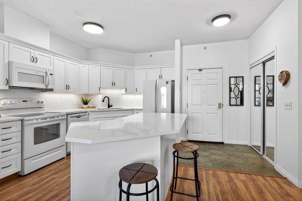 The Phoenician offers an exceptional lifestyle with amenities such as a car wash bay, theatre room with regular movie showings, guest suite, party and kitchen rooms, and a vibrant social scene including gardening, cards, exercise, music, and pool clubs. The building has also been well maintained, with exterior stucco repainted in recent years. The building is expertly managed with an on-site manager and four elevators for ease of access. The location is FANTASTIC! — just steps to Dalhousie Station, with shopping, dining, and C-Train at your doorstep. The University of Calgary, Market Mall, Foothills Medical Centre, University District, and downtown Calgary are all just minutes away. Don’t miss the chance to make it your new home. An outstanding opportunity to enjoy a turnkey home in a well-managed, 18+, amenity-rich building. Come see it today!