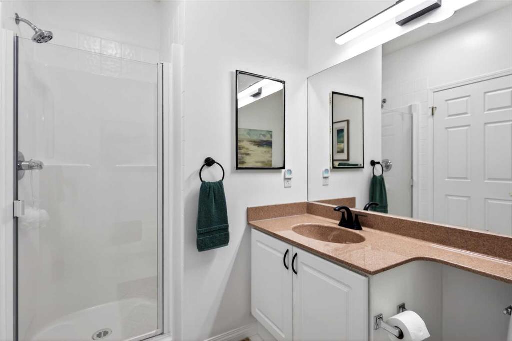 The spacious primary suite easily accommodates a king-sized bed and full furniture set, complemented by a large closet designed to handle your entire wardrobe. The ensuite is thoughtfully laid out with a soaker tub, separate shower, large vanity, and generous space for accessibility.
