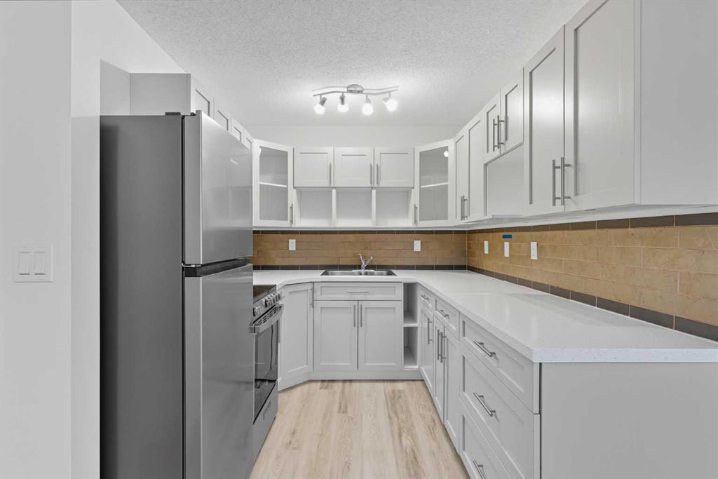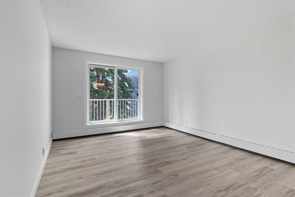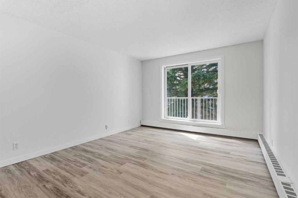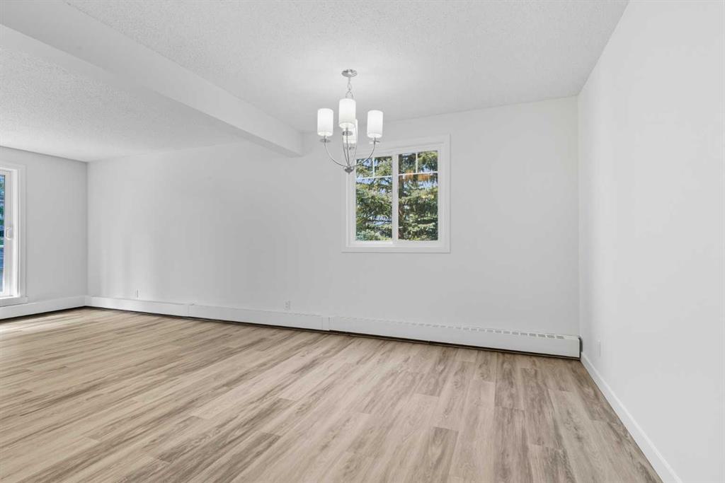 Step inside this beautifully updated corner unit condo and experience a home that balances style, function, and warmth. The open concept living and dining area sets the tone, with bright natural light pouring in through large windows and neutral tones that create a fresh, welcoming atmosphere. The kitchen is a true highlight, showcasing white cabinetry with elegant glass inserts that combine timeless style with everyday functionality. The bathroom has also been upgraded with a new vanity and a stylish tile surround, bringing a fresh, modern feel to this private retreat. The living room is spacious and inviting, perfect for relaxing or entertaining. The dining space sits under a contemporary chandelier, giving the area a polished, modern touch. This condo features two generously sized bedrooms, each designed with comfort in mind. Large windows fill the spaces with natural light, providing calming views of the treed courtyard. Whether you need restful retreats, guest accommodations, or a dedicated home office, these rooms offer the flexibility you need. Recent upgrades throughout include new flooring, lighting, and modern finishes, making this condo truly move-in ready. Prime location close to schools, shopping, dining & transit. Perfect for first-time buyers, downsizers, or investors. This is your chance to own a home that combines modern comfort with everyday convenience. Don’t wait, book your private showing today and see for yourself!