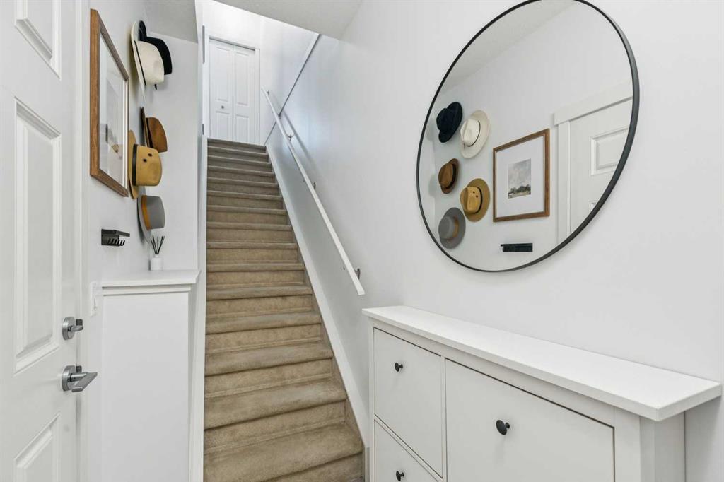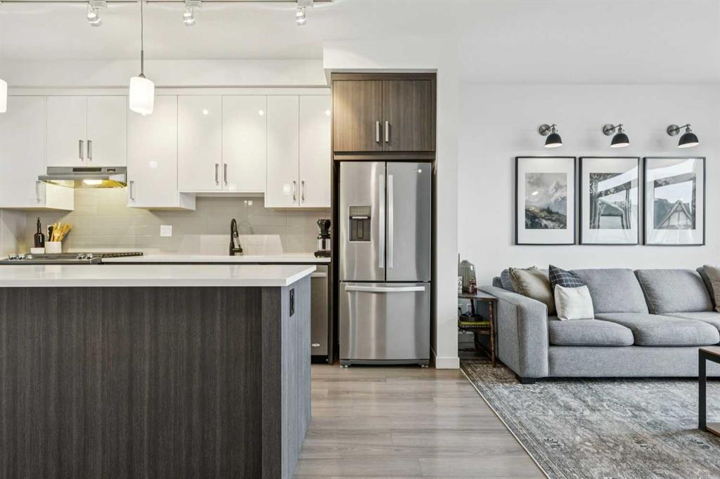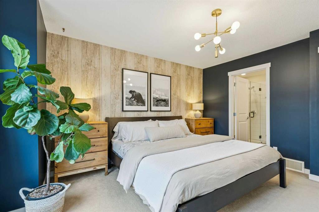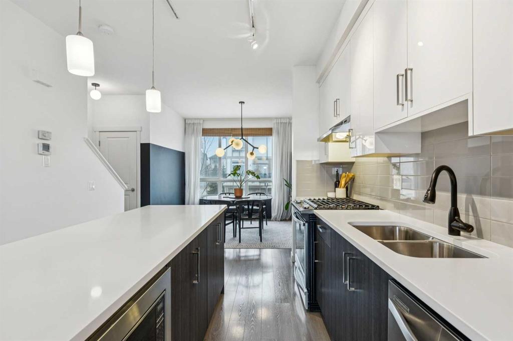 VIEWS extraordinaire—backing onto the ravine in the sought-after Timbers of Sherwood! This stunning modern 2-bedroom, 3-bathroom townhome shows like a showhome and has been meticulously maintained, featuring fresh paint , central air conditioning and designer lighting throughout. The bright, airy main living space is anchored by a stylish two-tone kitchen with quartz countertops, stainless steel appliances, and a gas range—perfect for everyday living and entertaining. Upstairs, the spacious primary bedroom offers a feature wall and dual closets, while the second bedroom captures incredible ravine views and doubles perfectly as a home office. The garage is more than just parking, with ample room for storage, a workbench, bikes, and seasonal gear. Enjoy a park just steps away, easy access to Stoney Trail for commuting, and the added bonus of being in the Sir Winston Churchill High School catchment. With low condo fees and a well-run complex, this home delivers outstanding value in a quiet, highly desirable pocket of NW Calgary—a rare opportunity you won’t want to miss.
