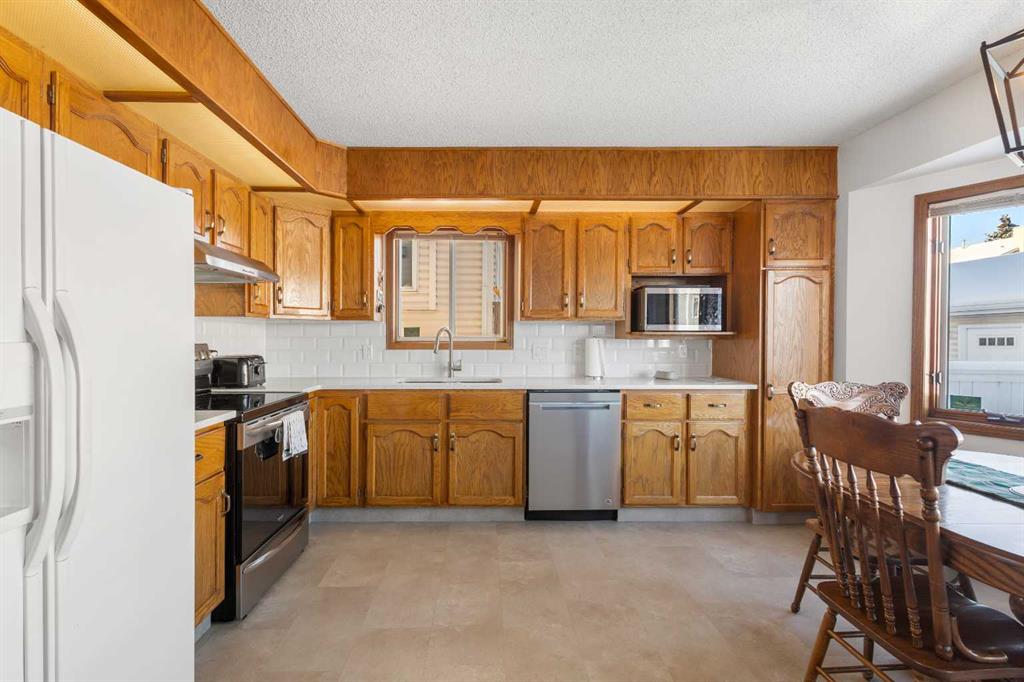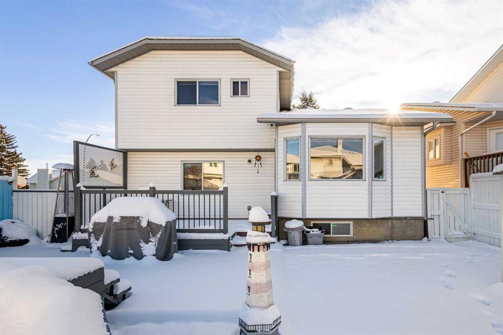 Discover this well-maintained detached home on a quiet street in Monterey Park. This charming 3-level split offers over 2,300 sq ft of thoughtfully designed living space, complete with 4 bedrooms, 2.5 baths, and a double attached garage. The main floor welcomes you with beautiful hardwood flooring and a bright, spacious living room highlighted by large south-facing windows. The kitchen impresses with warm wood cabinetry, quartz countertops, and a cozy breakfast nook framed by expansive windows. Just steps away, the inviting family room features a wood-burning fireplace, perfect for relaxed evenings at home. Upstairs, you’ll find three generously sized bedrooms, including the primary retreat with a walk-in closet and a private 3-piece ensuite. The fully finished basement adds even more versatility, offering a large recreation room and a fourth bedroom - ideal for guests, teens, or a home office. This home is poly-b free, providing added peace of mind. Step outside to your own private oasis that includes a large deck and a 4.5-ft deep heated pool with a chlorine dispenser, ready for summer fun and memorable gatherings. The double attached garage pairs with a large driveway, offering ample parking for multiple vehicles. Situated close to schools, playgrounds, shopping, and dining, this property delivers exceptional comfort and convenience in a welcoming, family-friendly neighbourhood. Don’t miss your opportunity to make this wonderful home yours, book your private showing today