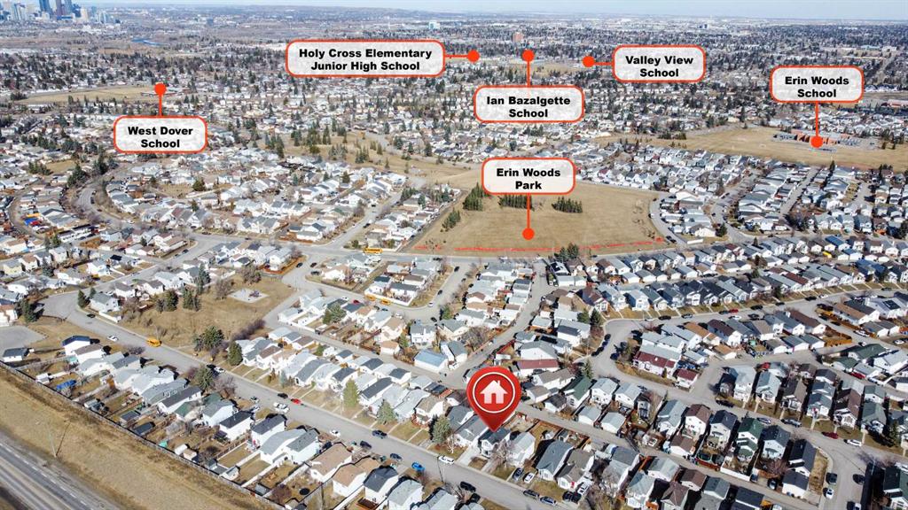Welcome to 126 Erin Road SE, a well-maintained two-storey home offering 3 bedrooms, 1 den and a functional layout. The main floor features a bright living room, dedicated dining area, and a practical kitchen, along with a convenient powder room, all finished with durable laminate and tile flooring. Upstairs, you’ll find three comfortable bedrooms and a full 4-piece bathroom, with continued laminate flooring throughout for a cohesive feel. The fully developed basement adds valuable living space with an additional bedroom, rec room, and storage area. Step outside to enjoy the backyard complete with a wood deck, shed, and rear alley access. Ideally located within walking distance to Erin Woods Park and Erin Woods School, with quick access to Peigan Trail, 52 Street, and Stoney Trail. Nearby schools include West Dover School, Ian Bazalgette School, Valley View School, and Holy Cross Elementary Junior High, making this a fantastic opportunity in a convenient, family-friendly community.