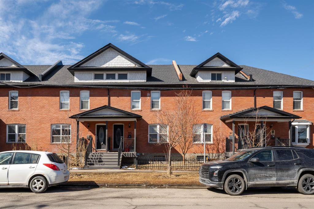| Open House Saturday March 28th and Sunday March 29th from 12-5pm |Welcome to the Historic Hamilton Apartments, built in 1912 and located in the heart of Inglewood of Calgary’s most iconic and storied communities. This 114 year old brick townhome (No Condo Fees) stands as a testament to time, having been present since the inaugural Calgary Stampede and just steps from Atlantic Avenue, the city’s original Main Street.Built by John Hamilton, this solid brick residence seamlessly blends rich history with thoughtful modern updates. Inside, exposed original brick walls line the main living spaces, while industrial lighting and updated electrical elements complement the home’s early architectural character. Carefully preserved details including original chandeliers, heat registers, and mouldings add authenticity and warmth throughout. The main floor offers an inviting, sun filled living room, perfect for relaxing or entertaining. The renovated kitchen features a built-in stove, full stainless steel appliance package, and distinctive billiard slate and barn wood countertops. A striking dining area set against a backdrop of exposed brick creates a truly memorable space for hosting family and friends.Upstairs, you’ll find beautifully maintained original wood railings, large period baseboards, and a refreshed 4-piece bathroom complete with upgraded tile, new vanity, and built-in shelving. Three spacious bedrooms include an oversized primary retreat with warm afternoon sun, elegant wall sconces, and wainscotting detailing. Secondary bedrooms enjoy bright east-facing morning light. The fully developed basement adds versatility with a cozy alcove and den ideal for a home office, media room, or play space, along with a utility/laundry area and ample storage, with potential for further development.Outside, enjoy an elevated wood deck, two rear parking stalls, and a charming low-maintenance front courtyard enclosed by wrought iron fencing.Recent updates include a newer hot water tank, washer, and dishwasher, blackout blinds in all bedrooms, a new bathroom vanity, luxury vinyl plank flooring on the upper level, attic insulation, and a freshly repainted main floor.Located just off 9th Avenue, this home offers unbeatable access to Inglewood’s vibrant shops, dining, and amenities. You’re steps from the aquatic centre, close to Pierce Estate Park and the Inglewood Bird Sanctuary, and only minutes from downtown Calgary and the Calgary Zoo.Homes like this are rare don’t miss your chance to own a true piece of Calgary history.