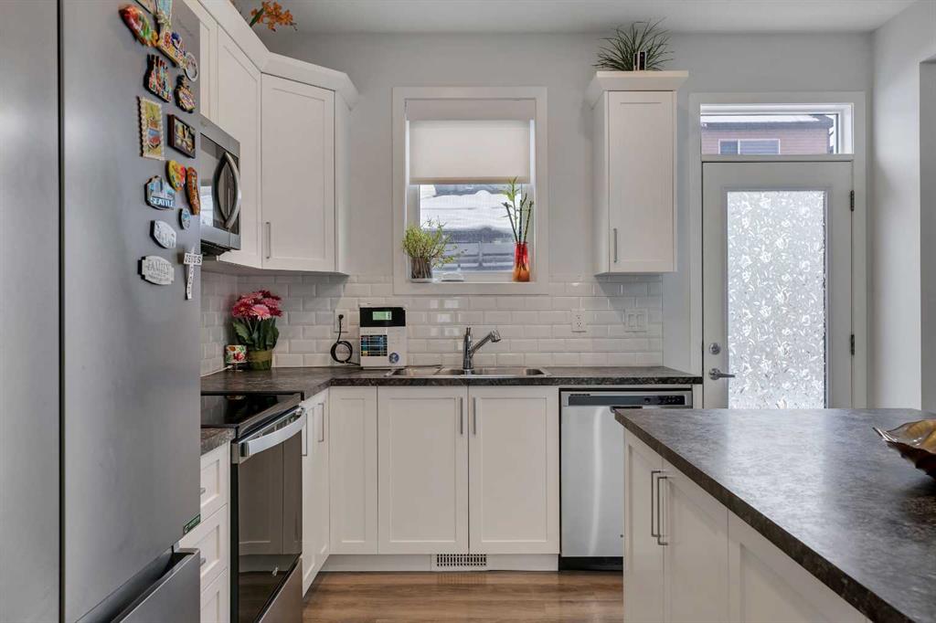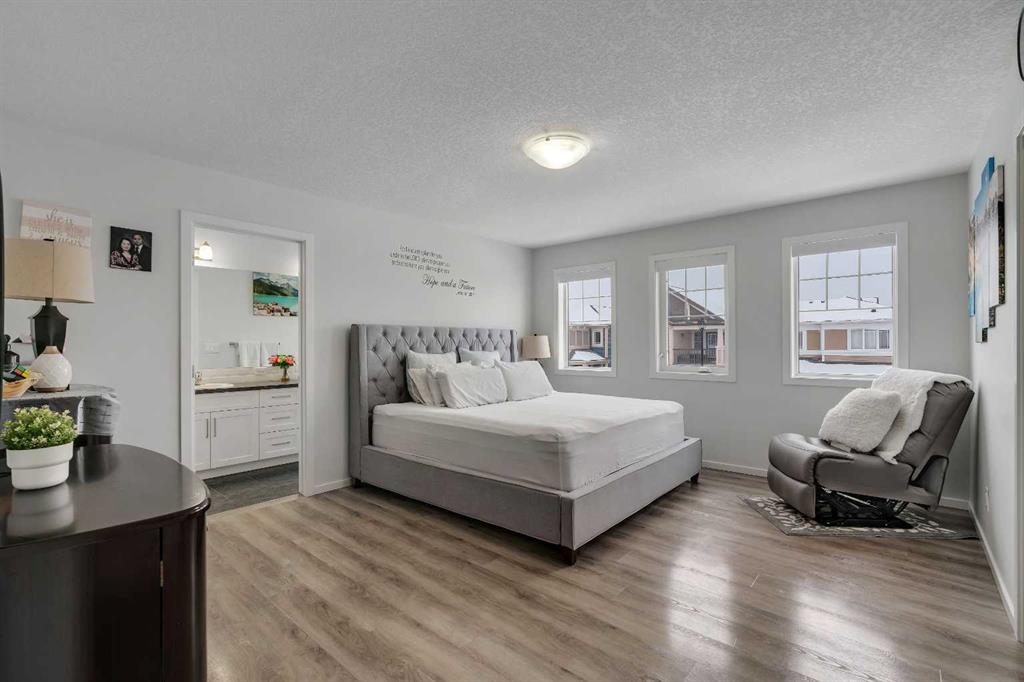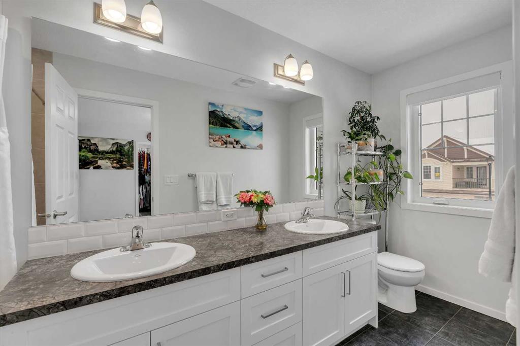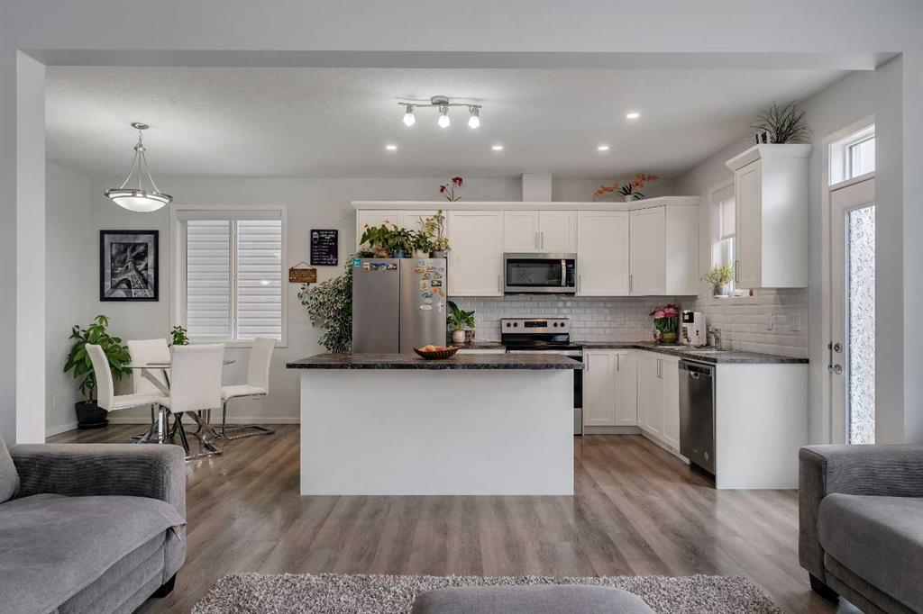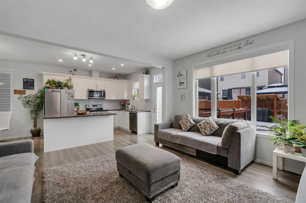 Welcome to 821 Windrow Green SW, a beautifully designed home offering modern finishes, generous living space, and exceptional functionality for today’s lifestyle. Situated on a quiet street with charming curb appeal, this home features a sun-filled south-facing backyard with upgraded landscaping, perfect for relaxing or entertaining. Step inside to an open-concept main floor designed for both everyday living and hosting guests. The stunning kitchen showcases crisp white cabinetry, stainless steel appliances, a classic white subway tile backsplash, and abundant counter space, along with a large center island with eating bar—ideal for casual meals or gathering with family and friends. The bright living room is filled with natural light from the large south-facing windows overlooking the backyard, creating a warm and inviting atmosphere. The main floor is completed with a convenient powder room, additional closet storage, and direct access to the double attached garage. Upstairs, the thoughtful layout provides privacy and comfort with a spacious bonus room separating the primary suite from the two secondary bedrooms. The expansive primary retreat features a large walk-in closet with ample shelving and hanging space, along with a luxurious 5-piece ensuite complete with dual sinks, generous counter space, and a deep soaker tub. An upper-floor laundry room adds to everyday convenience. Throughout the home you’ll appreciate hard surface flooring—including the stairs and upper level—modern vinyl plank flooring, central air conditioning, knockdown ceilings, and transom windows above exterior doors for added natural light. Room sizes are generous, offering comfortable living for families of all sizes. Additional highlights include an oversized hot water tank ideal for larger families and partial basement development featuring a fourth bedroom, providing flexibility for guests, a home office, or growing families. Just a 3-minute drive to Windsong Heights School (K–9) and within walking distance to Osborne Park, perfect for outdoor activities and green space enjoyment. Conveniently situated near the 8th Street and 40 Avenue overpass, as well as other major roadways, the property provides seamless access throughout the city. Public transportation, shopping centres, and additional parks are all close by, making everyday living both easy and connected.