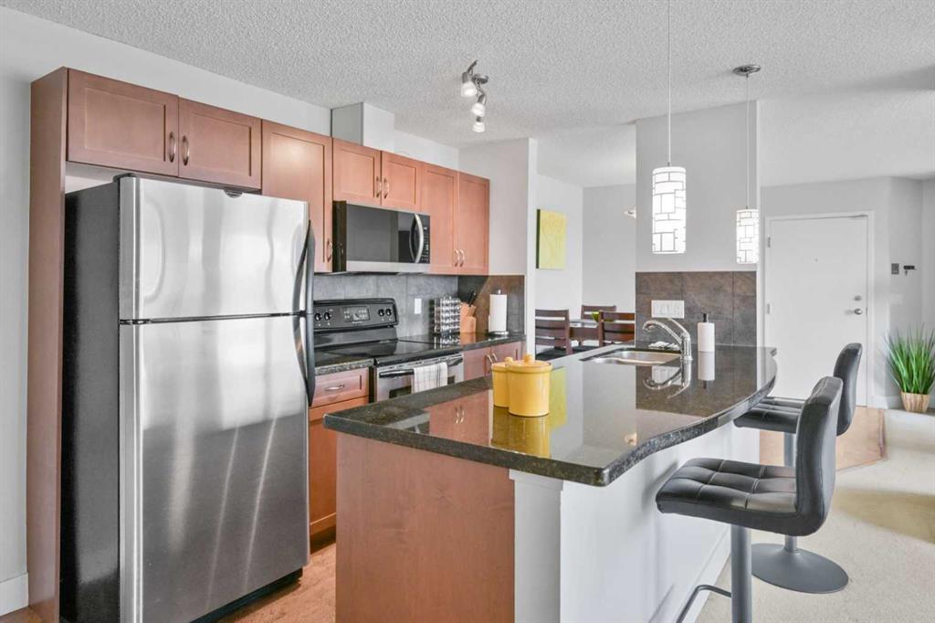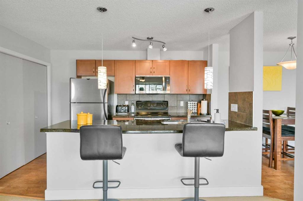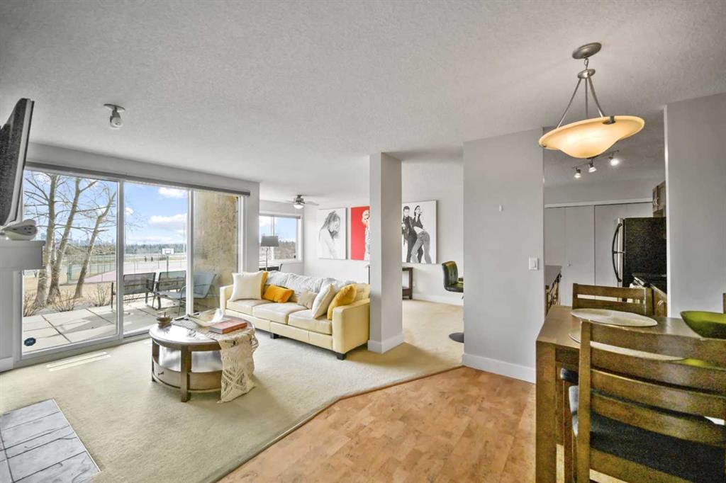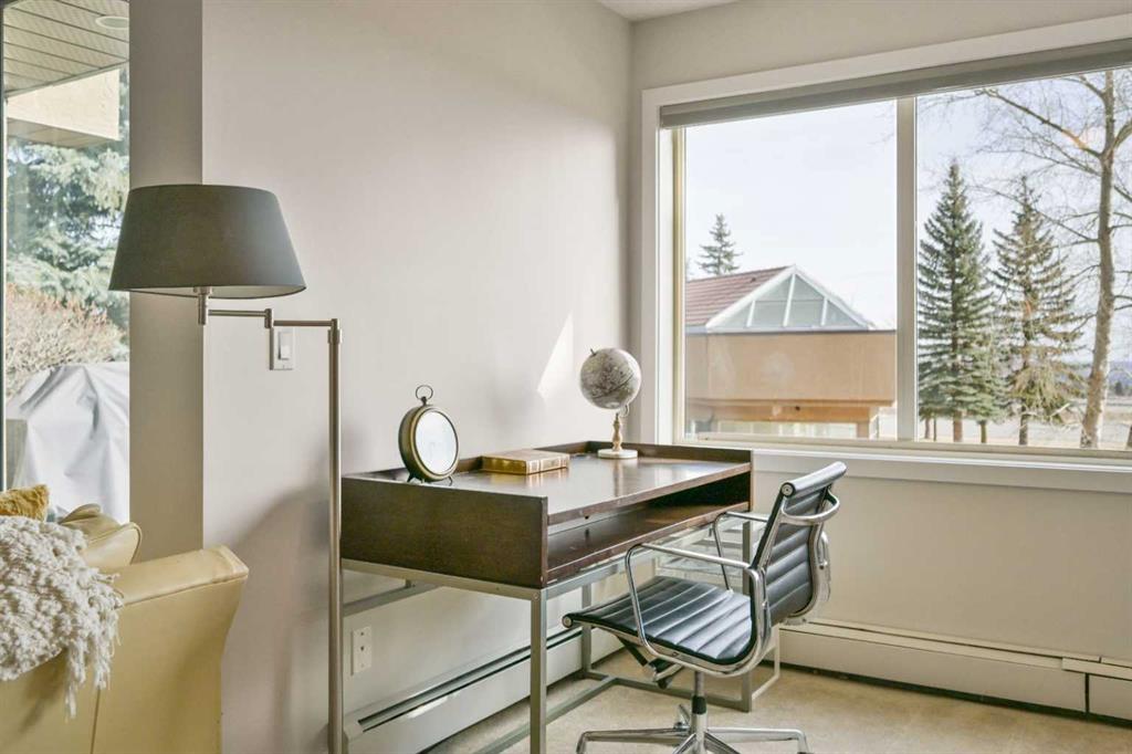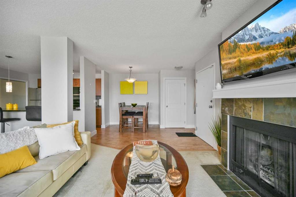 Click brochure link for more details. DEVELOPER SHOW SUITE | FULLY FURNISHED | 1,000+ SQ FT | UNOBSTRUCTED CITY VIEWS | TURN KEY INVESTMENT Step inside the developer’s former show suite, ideally located in the highly sought after community of The News at Broadcast Hill in the prestigious southwest neighbourhood of Patterson Heights. This ground floor, 2 bedroom, 2 bathroom walk out unit offers over 1,000 sqft of living space with unobstructed city skyline views from every room. Opportunities like this are rare, combining location, size, and value in one offering. The home has been fully upgraded and freshly painted, featuring brand new appliances and window coverings. Highlights include two full bathrooms, a spacious primary bedroom with walk in closet, in suite washer and dryer, underground parking, a large south facing patio, and a cozy wood burning fireplace. This unit is truly turn key and comes fully furnished with high end furnishings and curated artwork throughout. Whether you are looking for a move in ready home or a strong long term rental investment, this property delivers. Just bring your suitcase. Originally held as the developer’s prized show suite, this home includes premium upgrades and one of the best locations within the community, just steps from its exceptional amenities. Residents enjoy access to an indoor pool, hot tub, fitness centre, tennis and basketball courts, and an event space for private gatherings. Set on 17 acres of private land, this pet friendly community offers a unique lifestyle just 10 minutes from downtown Calgary. Enjoy peaceful walks, mature surroundings, and the soothing sound of the nearby waterfall just outside your door. This is the first time this unit has been offered for sale since its original purchase from the developer. A rare opportunity to own a fully furnished, show suite quality home in one of Calgary’s most desirable southwest communities