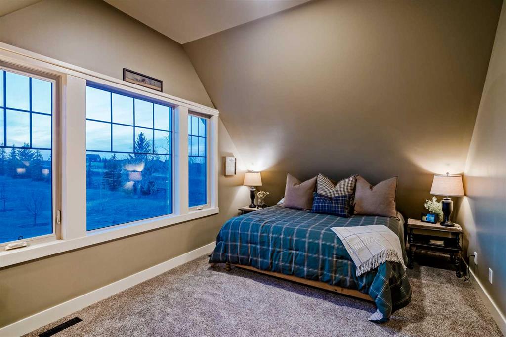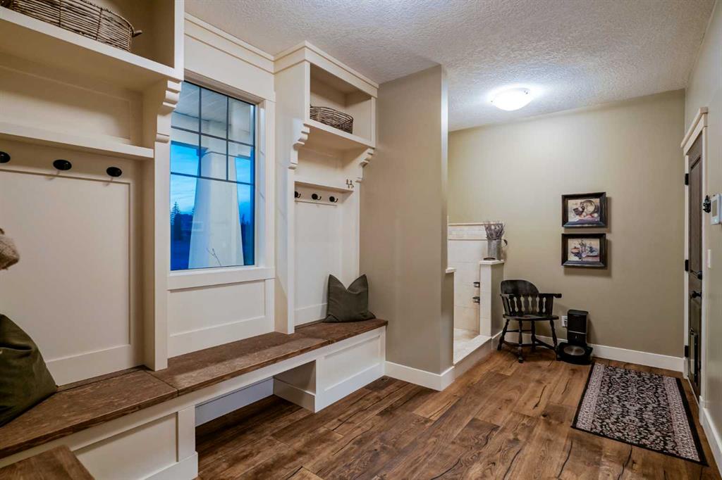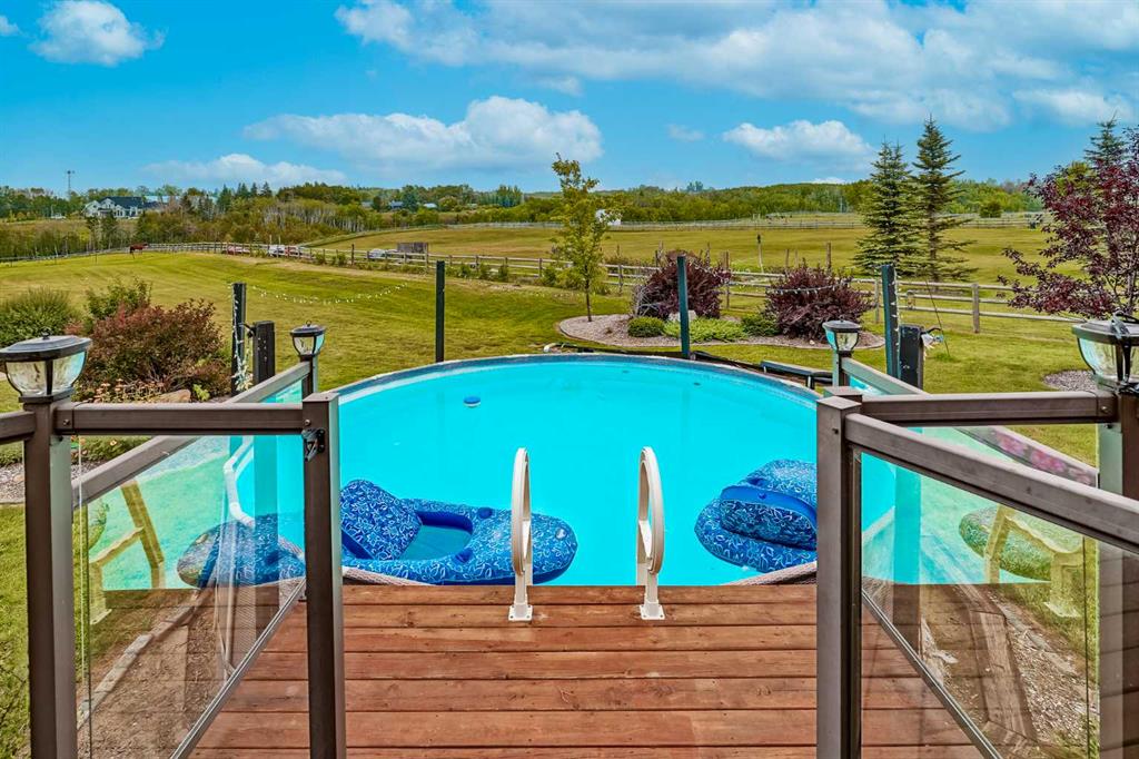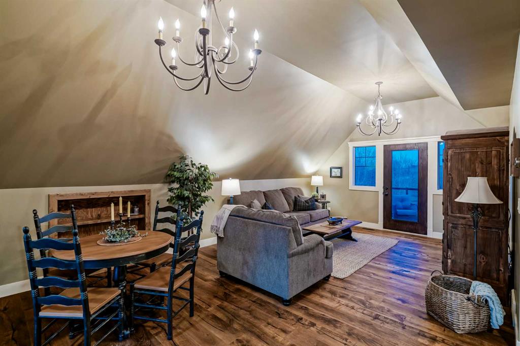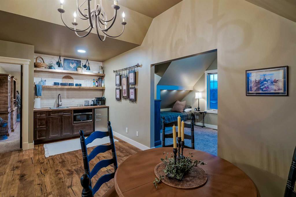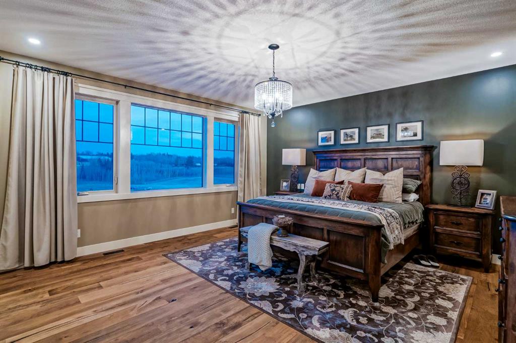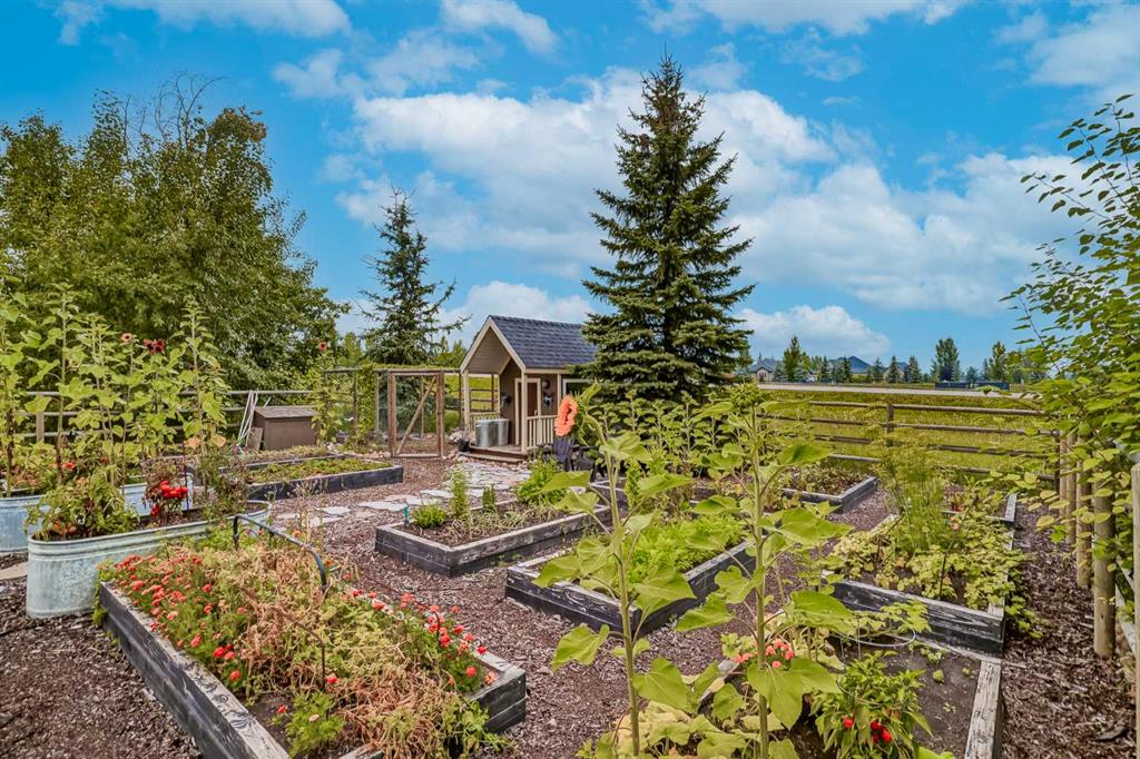 From the moment you drive up, there’s an immediate sense that this property is something special—set on 4.26 beautifully developed acres, it offers both presence and a quiet, understated grandeur. The home’s exterior showcases shingle-style siding crafted from high-quality compressed wood, complemented by extensive board and batten detailing and steep gables, creating a timeless architectural look carried consistently through the 5,589 sqft home and extended across the outbuildings. Expansive windows throughout invite natural light and capture views in every direction, while the interior offers a sense of comfort and ease felt the moment you walk through the door. At the heart of the home is a beautifully designed kitchen with hand-painted raised panel cabinetry, marble and granite surfaces, a statement double fridge/freezer, and a 48” dual fuel range. A walk-in pantry with a bar fridge and copper sink offers additional prep space, while custom reclaimed wood shelving adds warmth and character. Rare oiled wide-plank hardwood, travertine, and copper fixtures are featured consistently across the home. The main living areas extend seamlessly to a covered outdoor space with a vaulted wood ceiling and a double-sided fireplace, enhancing both indoor and outdoor ambiance. A custom open staircase connects all levels, leading to an upper level with dual primary walk-in closets connected directly to the laundry room for a practical circular flow. An attached nanny suite offers flexibility with a private entrance, deck, full bathroom, and bar area—ideal for guests or extended family. The grounds feature extensive custom stonework, cobblestone pathways, and mature landscaping surrounding a tranquil pond. Raised garden beds, a fully enclosed vegetable garden, and an insulated, powered chicken coop match the main home’s aesthetic. Irrigation and power are distributed across the entire property for easy maintenance. Perfectly suited for horse owners, the setup includes a barn with a landscaped patio, a dedicated recreation/pool table space, matching horse shelters, and additional fenced livestock areas. The oversized 1,500 sqft heated garage includes built-in cabinetry, extensive paved parking, and RV parking with full power hookup. Built for long-term performance, the home includes a triple furnace system for zoned heating, dual AC, boiler-based in-floor heat in the basement, and year-round water access in the garage. Every structure has been designed to complement the home, creating a cohesive and well-executed acreage where nothing feels out of place. This is more than a home; it’s a place to live well, gather often, and enjoy every season.