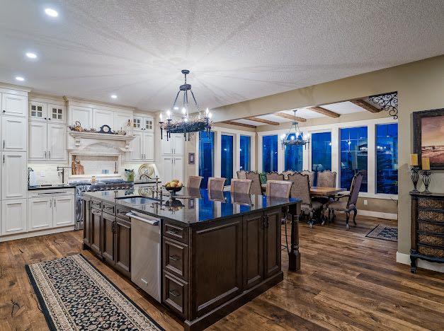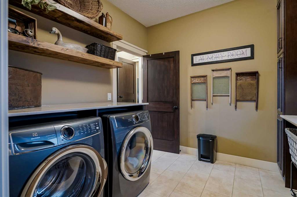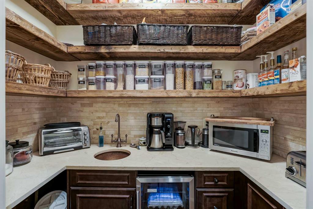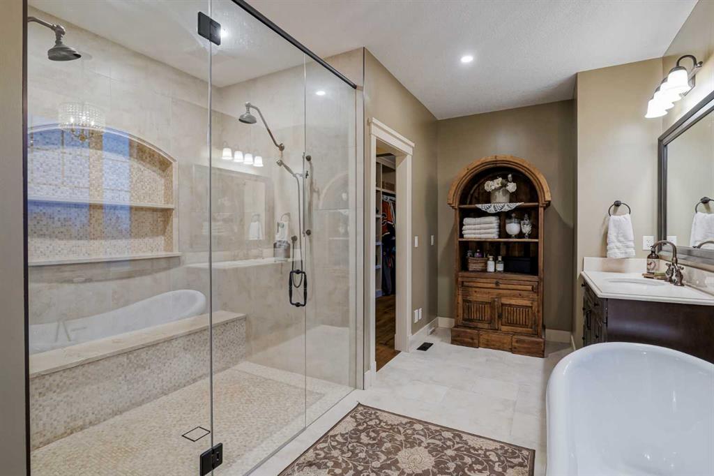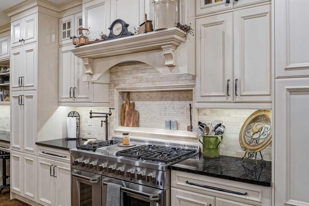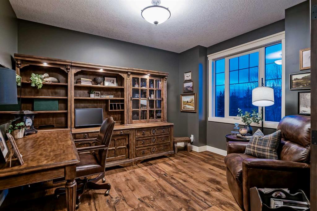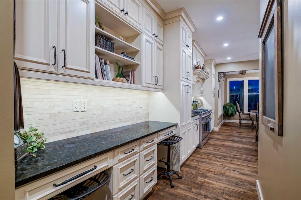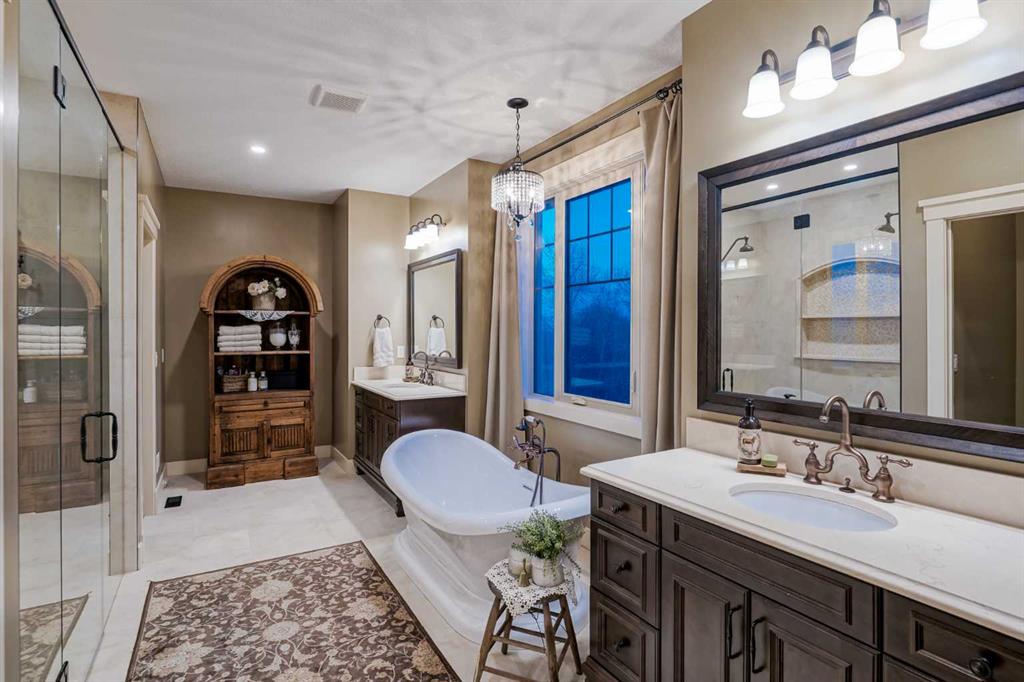 From the moment you drive up, there’s an immediate sense that this property is something special—set on 4.26 beautifully developed acres, it offers both presence and a quiet, understated grandeur. The home’s exterior showcases shingle-style siding crafted from high-quality compressed wood, complemented by extensive board and batten detailing and steep gables, creating a timeless architectural look carried consistently through the 5,589 sqft home and extended across the outbuildings. Expansive windows throughout invite natural light and capture views in every direction, while the interior offers a sense of comfort and ease felt the moment you walk through the door. At the heart of the home is a beautifully designed kitchen with hand-painted raised panel cabinetry, marble and granite surfaces, a statement double fridge/freezer, and a 48” dual fuel range. A walk-in pantry with a bar fridge and copper sink offers additional prep space, while custom reclaimed wood shelving adds warmth and character. Rare oiled wide-plank hardwood, travertine, and copper fixtures are featured consistently across the home. The main living areas extend seamlessly to a covered outdoor space with a vaulted wood ceiling and a double-sided fireplace, enhancing both indoor and outdoor ambiance. A custom open staircase connects all levels, leading to an upper level with dual primary walk-in closets connected directly to the laundry room for a practical circular flow. An attached nanny suite offers flexibility with a private entrance, deck, full bathroom, and bar area—ideal for guests or extended family. The grounds feature extensive custom stonework, cobblestone pathways, and mature landscaping surrounding a tranquil pond. Raised garden beds, a fully enclosed vegetable garden, and an insulated, powered chicken coop match the main home’s aesthetic. Irrigation and power are distributed across the entire property for easy maintenance. Perfectly suited for horse owners, the setup includes a barn with a landscaped patio, a dedicated recreation/pool table space, matching horse shelters, and additional fenced livestock areas. The oversized 1,500 sqft heated garage includes built-in cabinetry, extensive paved parking, and RV parking with full power hookup. Built for long-term performance, the home includes a triple furnace system for zoned heating, dual AC, boiler-based in-floor heat in the basement, and year-round water access in the garage. Every structure has been designed to complement the home, creating a cohesive and well-executed acreage where nothing feels out of place. This is more than a home; it’s a place to live well, gather often, and enjoy every season.