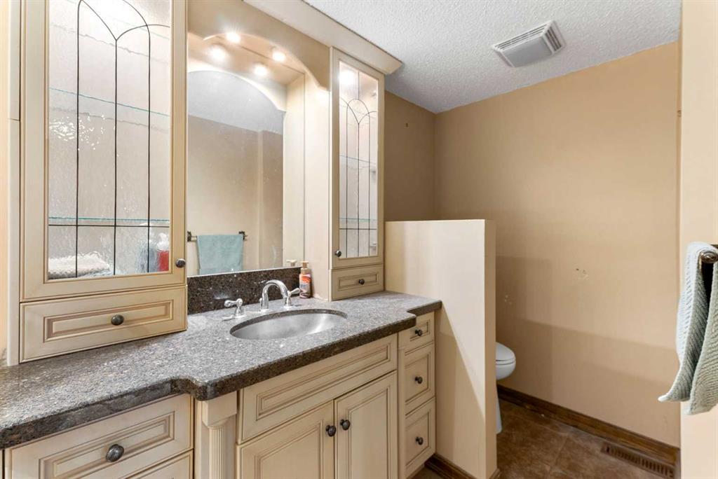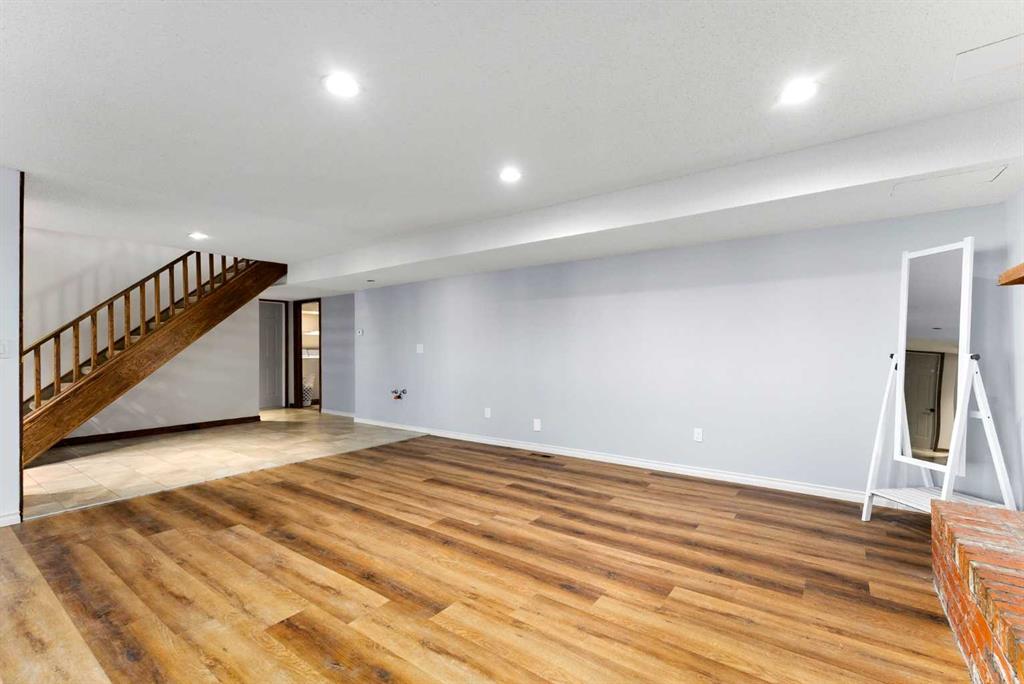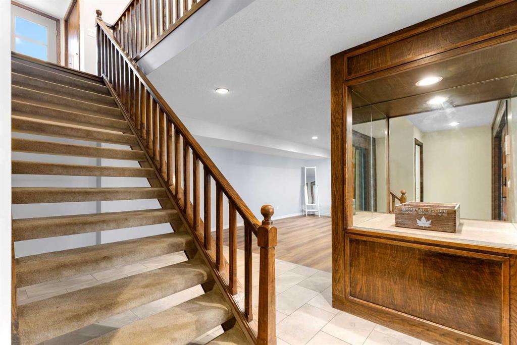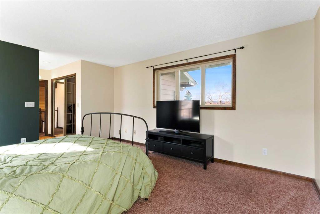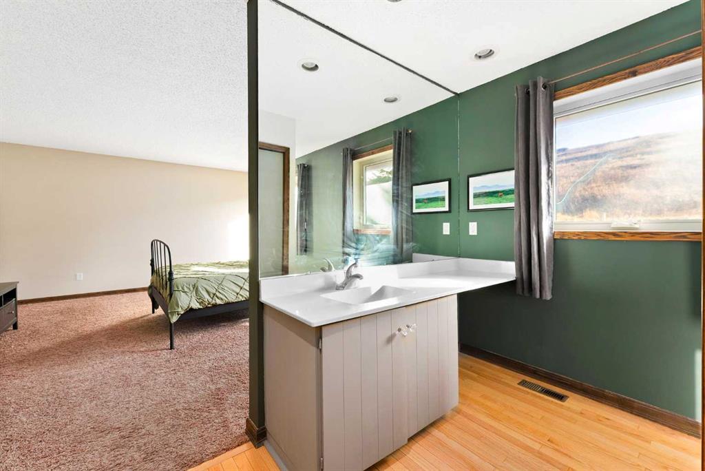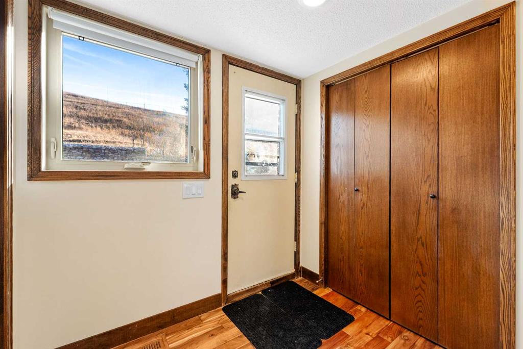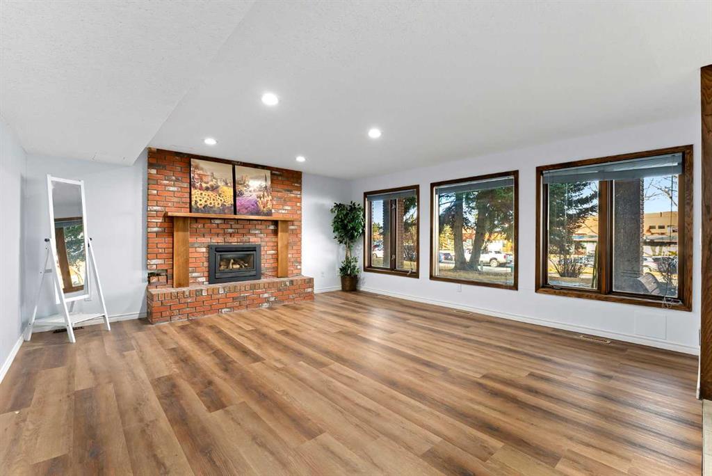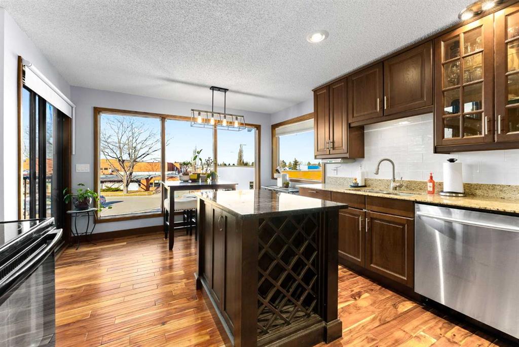Set on a spacious 0.40-acre lot directly across from Cochrane’s tri-school site and indoor arena. This home is perfectly positioned for families; kids can walk to everything. Unique 1.5-storey reverse walkout offers 3 bedrooms and 2.5 bathrooms, combining comfort with a distinctive layout. The main entry welcomes you with a large, bright family room showcasing new luxury vinyl plank flooring and a cozy gas insert brick fireplace. Additional features include rough-in plumbing for a future wet bar, a convenient half bath with laundry, and direct access to the oversized 23' x 23' double attached heated garage, complete with durable epoxy floors. Upstairs, the main level showcases a spacious living and dining area with vaulted wood ceilings, a second gas fireplace, and a wall of tinted front windows plus sliding doors leading to the newly refurbished, wrap-around deck. Perfect for relaxing, entertaining, and taking in the surrounding mountain views. The kitchen is well-appointed with stainless steel appliances, granite countertops, under-mount lighting, an island, and a cozy breakfast nook with access to the deck, complete with gas line for BBQ. This level also includes two generously sized bedrooms, one featuring a Murphy bed, and a 5-piece bathroom with washer and dryer. A rear exit leads to a beautifully landscaped yard complete with patio, gazebo, and two storage sheds. The upper loft overlooks the main living space and is ideal for a home office, gym, or reading area. Adjacent is the primary suite, offering a walk-in closet, 4-piece ensuite, and lovely front and rear views of the property. Additional highlights include fresh paint and carpet, paved driveway with space for four vehicles, mature trees, and well-maintained landscaping. If you're looking for a home with character, space, and an unbeatable location, this is it. Quick possession available.