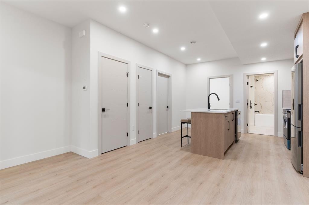 Glenbrook’s Finest! Step into a bright and inviting open-concept main floor where function meets elevated design. At the front of the home, a beautiful formal dining area sets the stage for stylish gatherings and elegant dinner parties. Just beyond, the chef-inspired kitchen boasts a massive waterfall quartz island, double-wide fridge, Bosch cooktop, wall oven, and dishwasher. Adjacent to the island, a thoughtful prep and storage area includes a built-in bar fridge and extended cabinets with convenient pull-out drawers—keeping everything organized and within easy reach for seamless entertaining. Warm neutral tones, built-in ceiling speakers, and timeless finishes create the perfect backdrop for both daily living and hosting with ease. At the rear of the home, a cozy fireplace lounge flows effortlessly onto a sprawling east-facing deck—ideal for enjoying quiet sunny summer mornings or relaxed evenings. Just off the kitchen, a spacious mudroom offers even more custom cabinetry to store your family’s essentials. Upstairs, a versatile loft area offers the perfect spot for a home office or reading nook. The massive primary retreat features heated floors in the spa-inspired ensuite, and a deep soaker tub. Two additional generously sized bedrooms and a stylish four-piece bath complete the upper level. Downstairs, the home offers even more flexibility with a bright and spacious legal basement suite (pending final City of Calgary approval). Featuring two private bedrooms and a large open living area, this level is ideal for extended family, guests, or future rental income. This home isn’t just beautifully finished—it’s a thoughtful investment in style, space, and long-term potential.