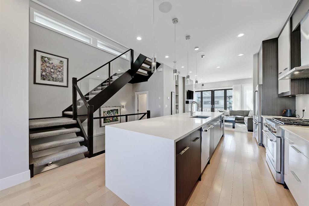 **OPEN HOUSE THIS WEEKEND: SAT & SUN, MAR 28TH & 29TH FROM 2 PM TO 4 PM** Located in an A++ location in the heart of Altadore, this beautifully appointed infill built by Trickle Creek Homes sits on a quiet street with a sunny south-facing backyard and exceptional outdoor living. Featuring over 2,600 sq ft of developed space, this home offers 4 bedrooms, 3.5 bathrooms, and a fully developed basement. The impressive main floor features 10-ft ceilings, expansive windows with Hunter Douglas window coverings, engineered hardwood flooring, and natural light throughout. A formal front foyer provides a practical entry with a coat closet, mirror, and key drop area. The galley-style kitchen offers built-in ceiling speakers, a quartz waterfall island, and high-end Jenn-Air appliances, including a 6-burner gas stove. A discreet powder room and a well-designed mudroom with bench seating, hooks, and storage complete the main floor. Step out to the sunny South-facing, fully landscaped backyard with a multi-tiered brick patio, outdoor gas fireplace, and dual gas lines (for BBQ and heater). The detached garage is insulated, drywalled, and heated. Upstairs, the spacious primary retreat features vaulted ceilings, a spa-inspired ensuite with heated floors, a freestanding tub, and a walk-in closet with built-ins. Two additional bedrooms, a full bath, and an upper laundry with a side-by-side washer and dryer complete this level. The fully developed basement offers 9-ft ceilings, a large rec room, a wet bar, an additional guest bedroom with a proper window and a huge closet, a full bathroom with tiled flooring, an oversized vanity with quartz, a fully tiled shower with a bench and a 10mm glass door. A proper and fully developed storage room completes this level. Just minutes to Sandy Beach, River Park, Marda Loop, top schools, and major routes—this exceptional Altadore home is truly in a class of its own. Schedule your private showing today!