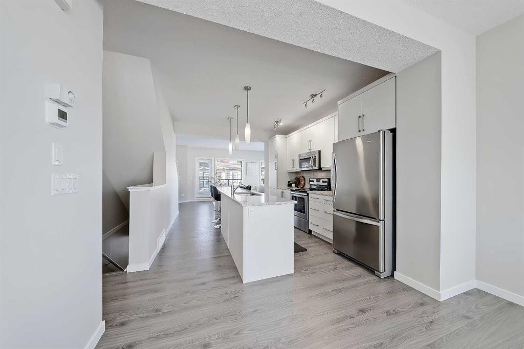 Welcome to refined townhome living, set within one of Cochrane’s most scenic and thoughtfully planned communities! Backing onto rolling natural landscapes with elevated sightlines, this modern three-storey residence offers the rare balance of contemporary design, functional space, and everyday comfort, all just minutes from downtown Cochrane and the Bow River pathway system.